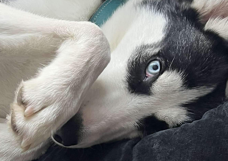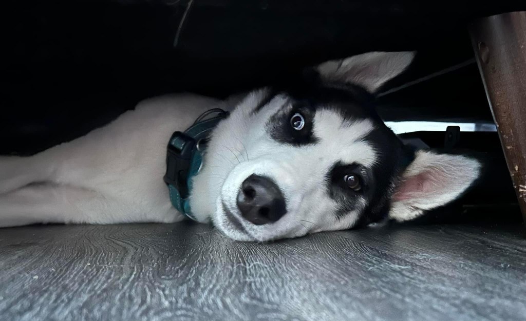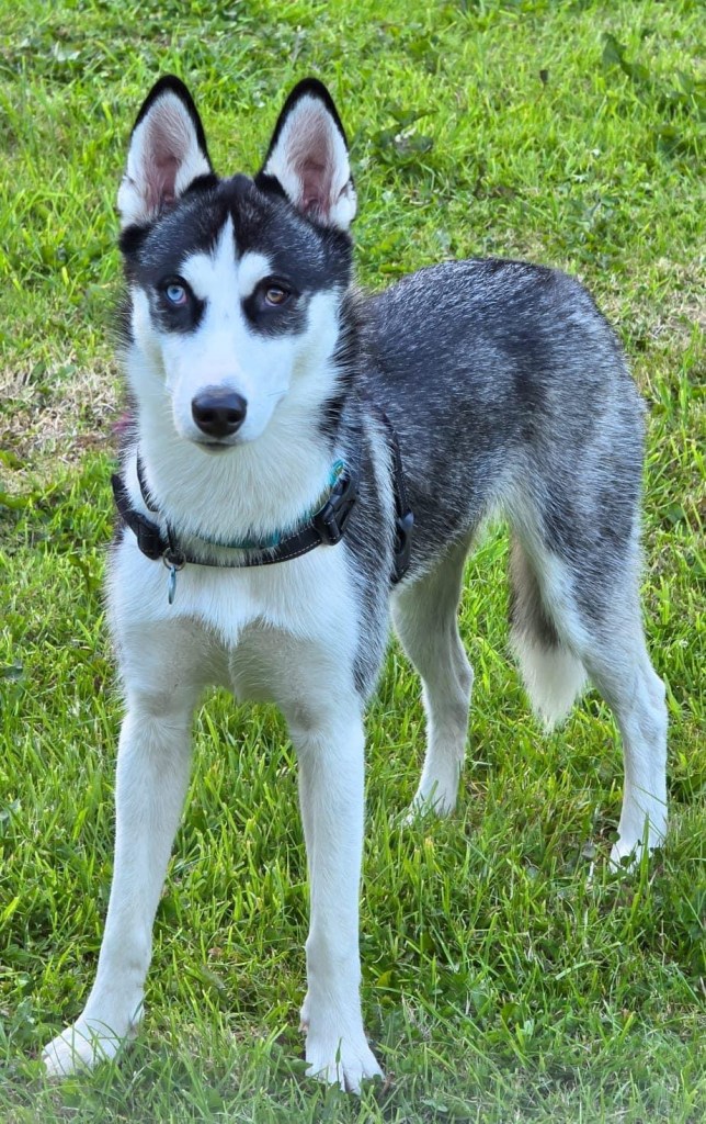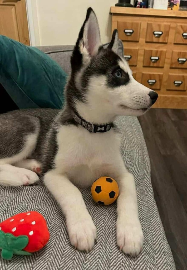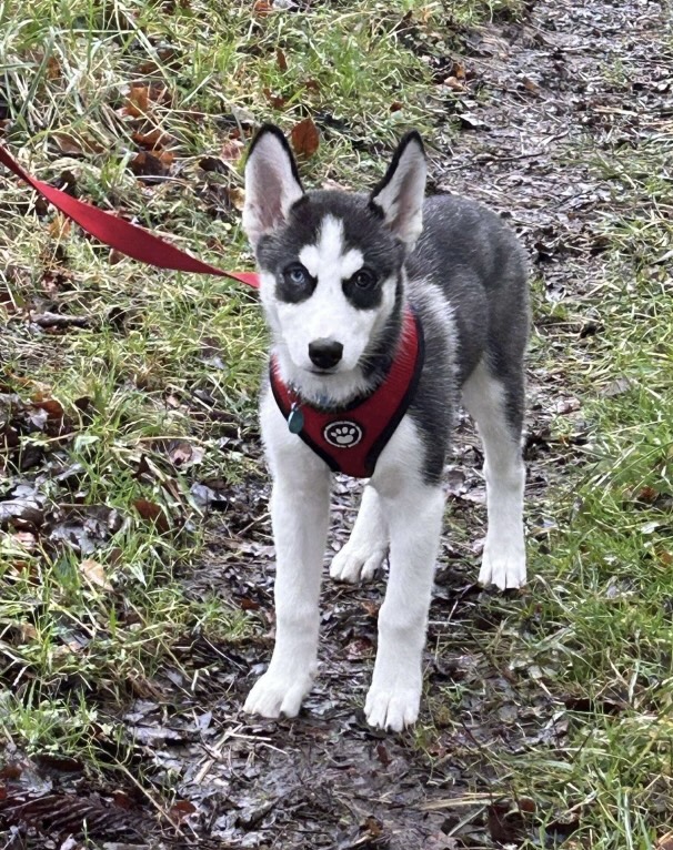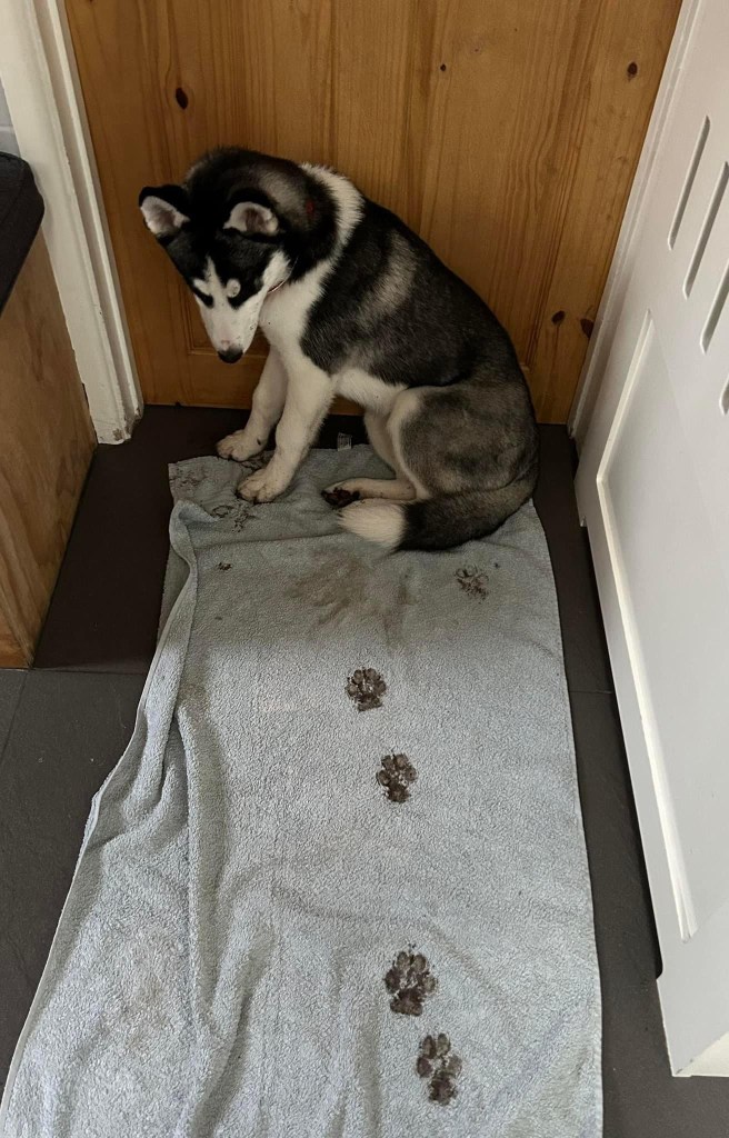 The Great Walking Debate and the Dreaded Cone. Not every puppy loves walks, and Athena made her opinions known very early on. The leash would go on, and suddenly our energetic Husky turned into a sack of immovable fluff. Some days, she’d *refuse* to budge, her eyes fixed on us with a look that said, *“And what exactly is the point of this?”* But if there’s one thing that struck fear into her brave little heart, it was the dreaded orange traffic cone. The first time she saw one, her entire body stiffened, ears flat, as if she’d encountered the apex predator of her nightmares. She would skirt around it, wide-eyed and suspicious, pulling on the leash to put as much distance between her and the cone as possible. To this day, we have no idea what Athena thinks the cone *is*, but in her mind, it is clearly *evil incarnate.* Thankfully she now lives for her walks, they are her favourite thing ever, well apart from socks. Walking Athena, we quickly learned, was less about exercise and more about negotiation. On some days, she would strut proudly; on others, she’d stop and sniff every blade of grass as if stalling for time. Athena does things on her terms, and when it comes to walks, she’s no pushover.