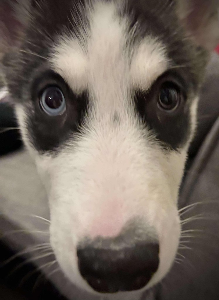 The Heart of Our Home. For all her quirks, stubbornness, and sock-stealing tendencies, Athena has brought us more love and laughter in this past year than I could have ever imagined. She’s gentle when it matters most,curling up beside us after a long day, pressing her soft head into our laps as if to remind us that we’re not alone. Her intelligence astounds us, her stubborn streak challenges us. She makes us laugh when we need it most and teaches us patience when ours is wearing thin. Every stolen sock, every dug hole, and every defiant pause on a walk has made this year unforgettable. Athena may have turned our lives upside down, but she’s also filled every corner of our home with joy. Looking ahead, I can only imagine the adventures still waiting for us. Athena will grow older, wiser (hopefully a little less stubborn), but I know her spirit will remain the same gentle, energetic, intelligent, and oh-so-loving.