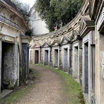 The West Cemetery is known for its iconic Gothic architecture, winding pathways, and dense greenery. Notable features include the Egyptian Avenue, a passage flanked by obelisks and tombs in the style of ancient Egypt, and the Circle of Lebanon, a ring of crypts surrounding a centuries-old cedar tree. The East Cemetery, which was opened later, is more modern in layout but still contains numerous historic graves.
