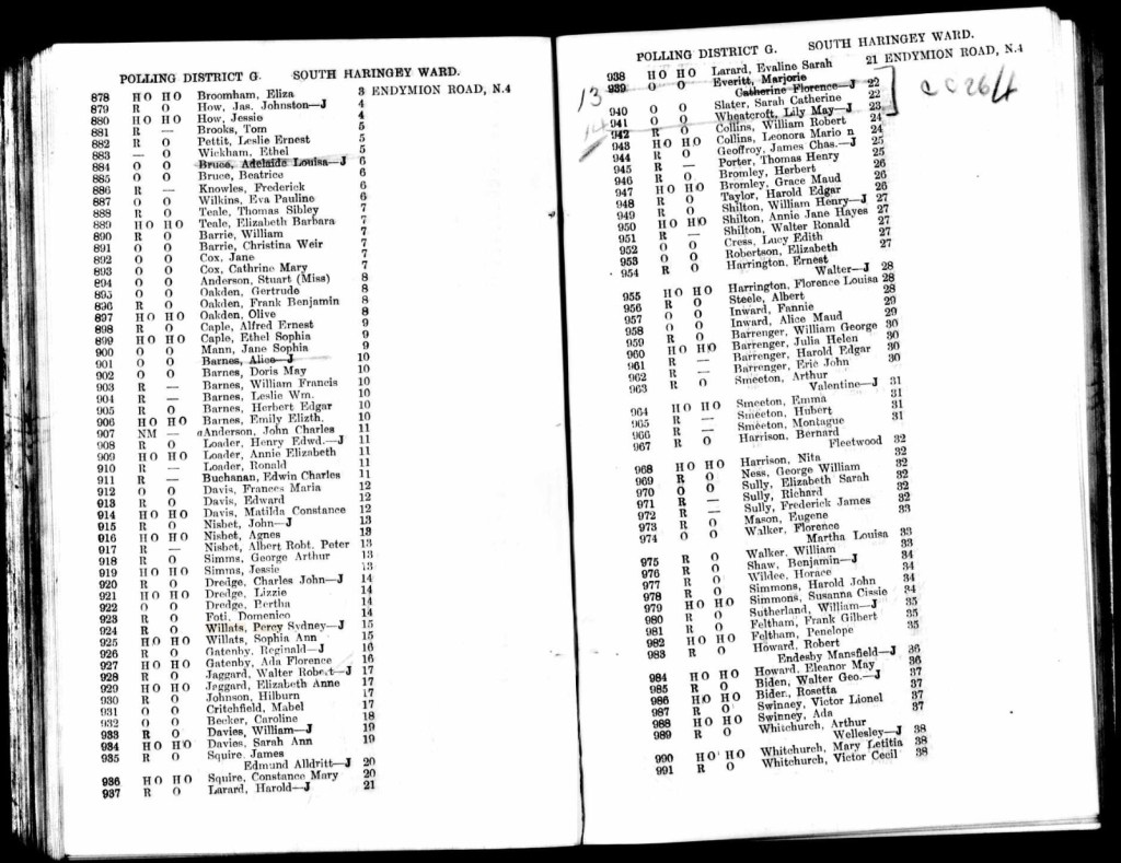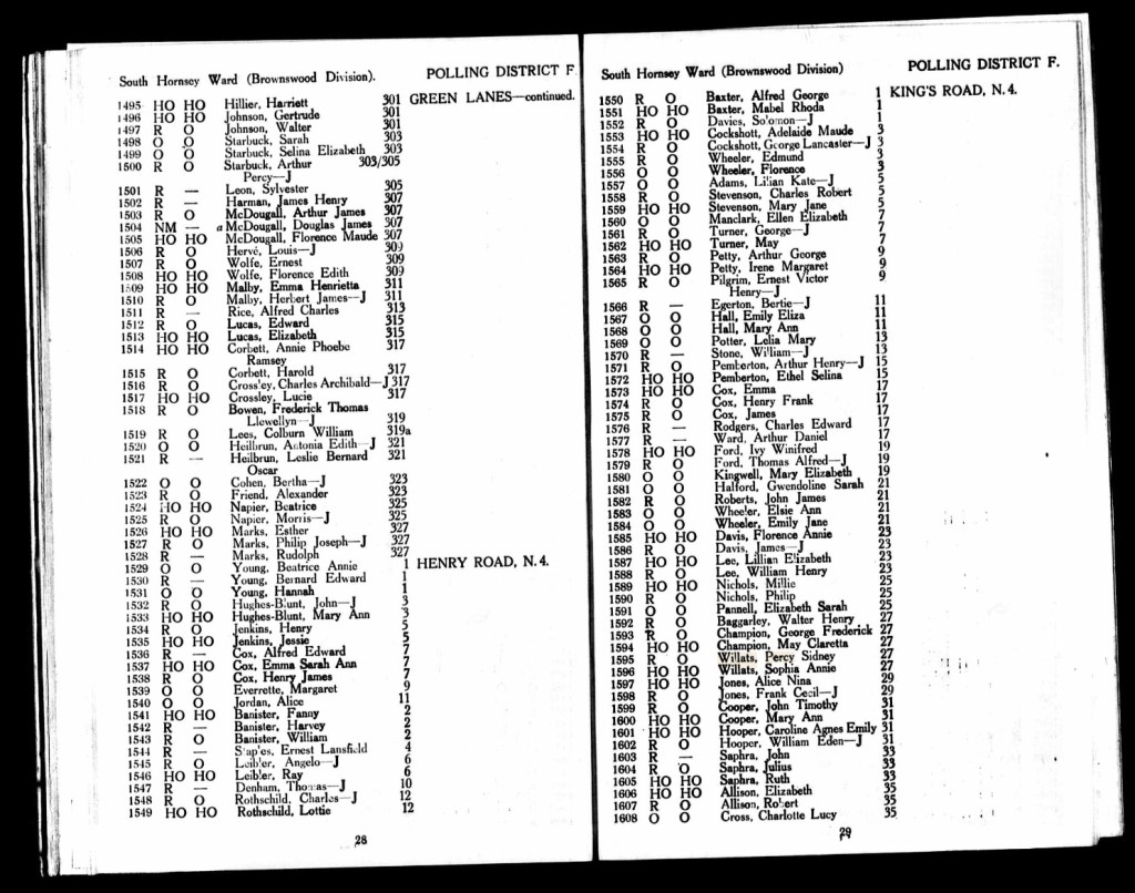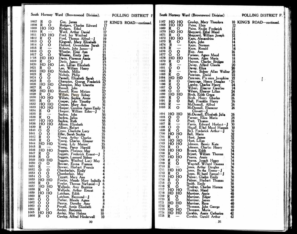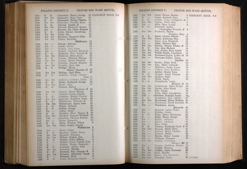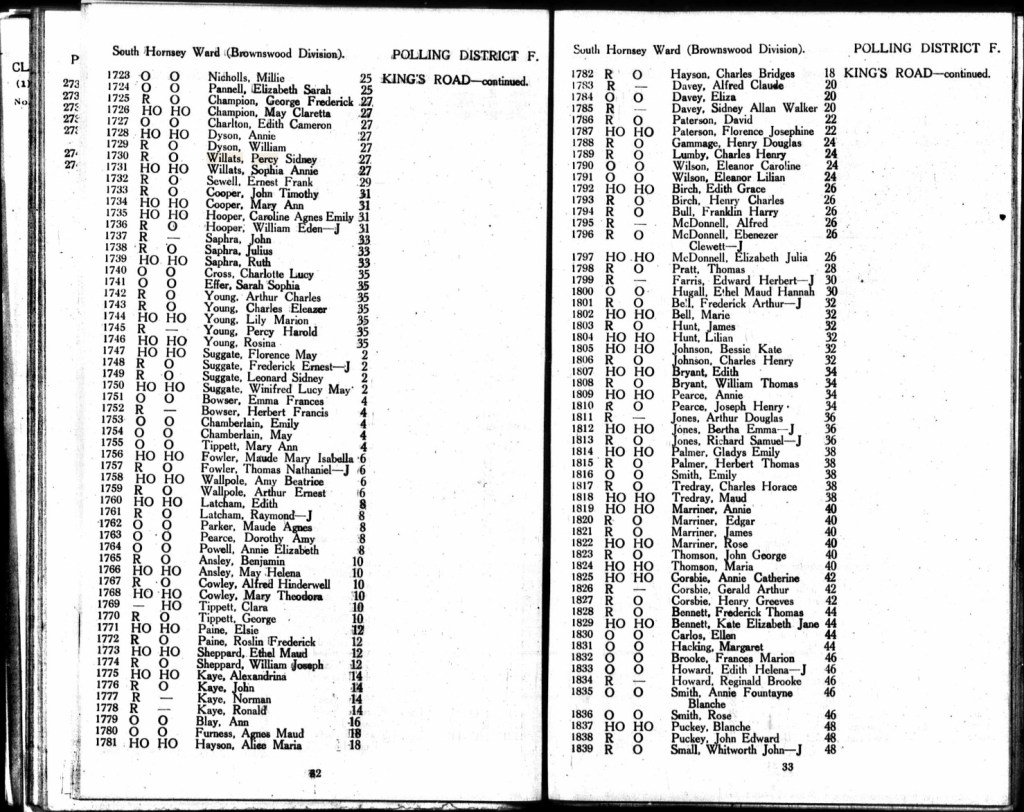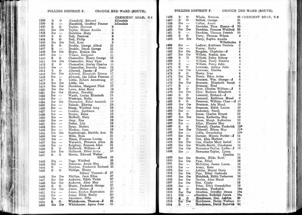 The 1935 and 1936, London, England, Electoral Register shows Sidney, Sophia, and Percy Francis were now residing at, Crescent Road, Hornsey, Middlesex, England, in 1935 and 1936. They were residing at Number 4.