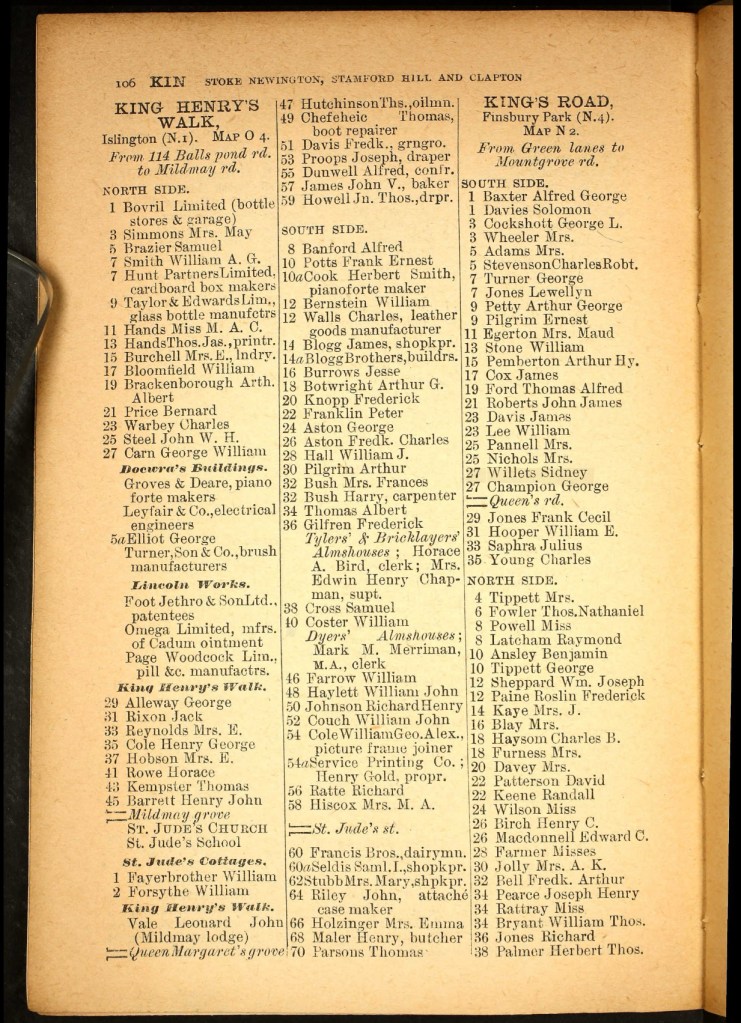 She gave her husband Percy’s occupation as an insurance clerk, and their abode as 27 Kings Road, Stoke Newington.
