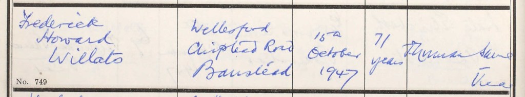 In his final moments, Frederick was surrounded by his son, Clyde Howard Willats, who was there to offer comfort and support. Clyde lovingly registered his father’s death on Monday, 13th October 1947, ensuring that Frederick’s legacy would continue to be remembered with respect.