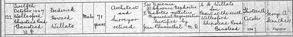 With deep sadness and reverence, it’s our time to honor the passing of Frederick Howard Willats, a devoted husband, father, and respected professional. At the age of 71, Frederick, a retired architect and surveyor, peacefully passed away on Sunday, 12th October 1947, at his home, Wellesford, Chipstead Road, Banstead, Surrey, England.