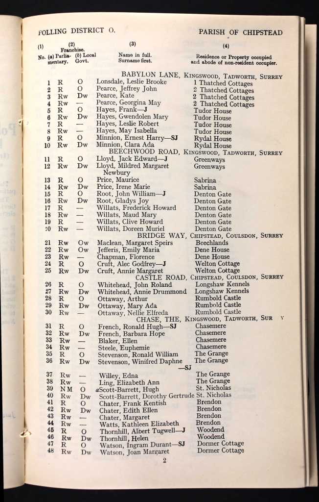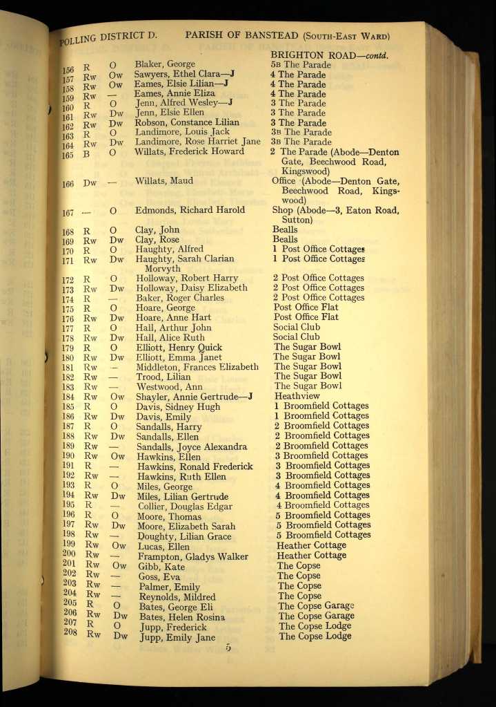 Although the 1939 Register lists Frederick and his family as living at Number 19, The Parade, Ballards Green, Burgh Heath, Banstead, Surrey, England, the 1939 Electoral Register, shows a different address for them, Denton Gate, Beechwood Road, Kingswood, Banstead, Surrey, England.