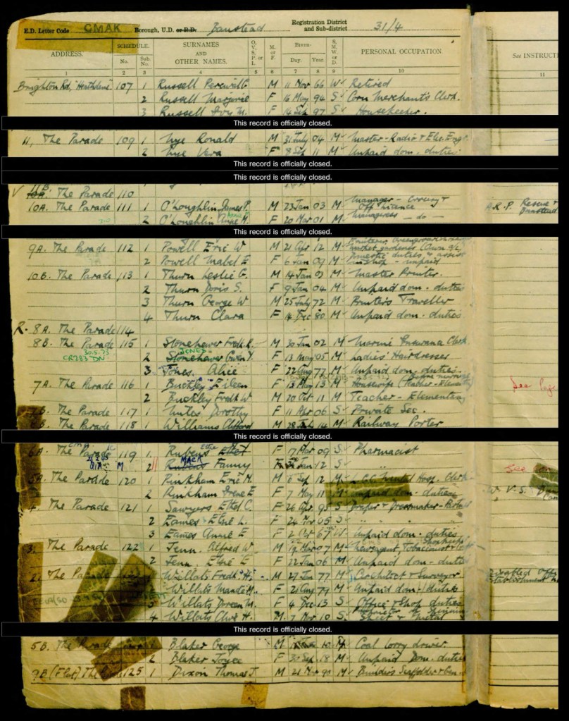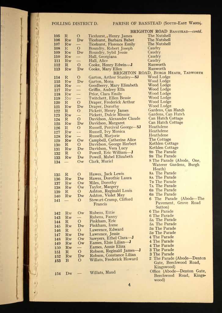 However another 1939 Electoral Registers, shows Frederick and Maud’s non-residential address p as Number 2, The Parade, Brighton Road, Banstead, Surrey, England and their residing address at Denton Gate, Beechwood Road, Kingswood, Banstead, Surrey, England.