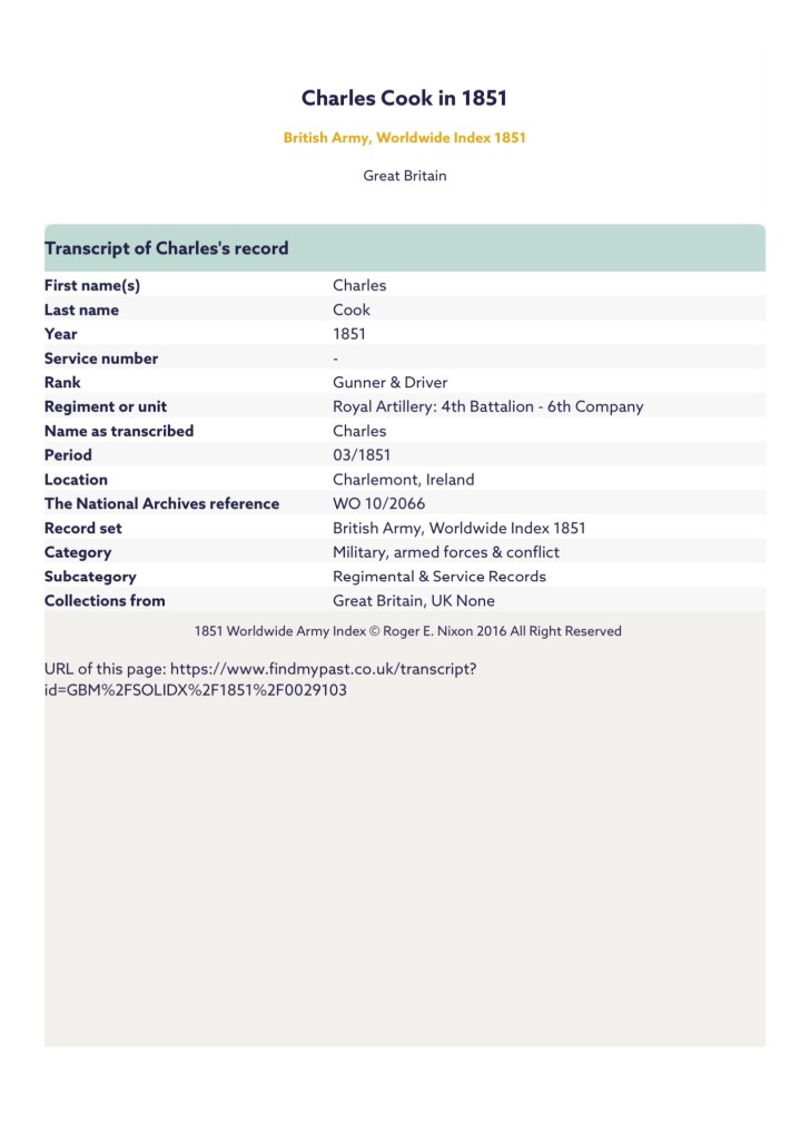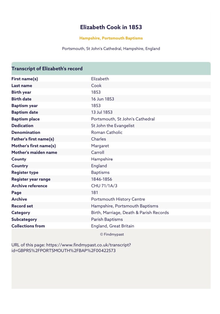 Despite the challenges, this discovery feels like an important piece of the puzzle. All signs point to Elizabeth being Margarita and Charles’s daughter, and I hope to soon have her birth certificate to add to our growing archive of family history. Until then, I hold onto the belief that this little girl born in Portsea was part of their story, a testament to the mobility and resilience that defined military family life in the mid-19th century.