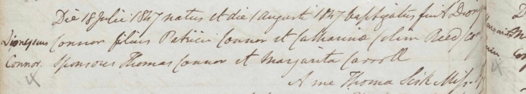 Interestingly, Dennis was baptized under the name Dionysius Connor, the Latinized version of his name, reflecting the traditions of the Church at the time. This record not only confirms Margarita’s presence in England by 1847 but also highlights the close ties she shared with her family and the role she played in their lives. It’s a small but meaningful detail that begins to weave together the story of her journey and the bonds that sustained her.
