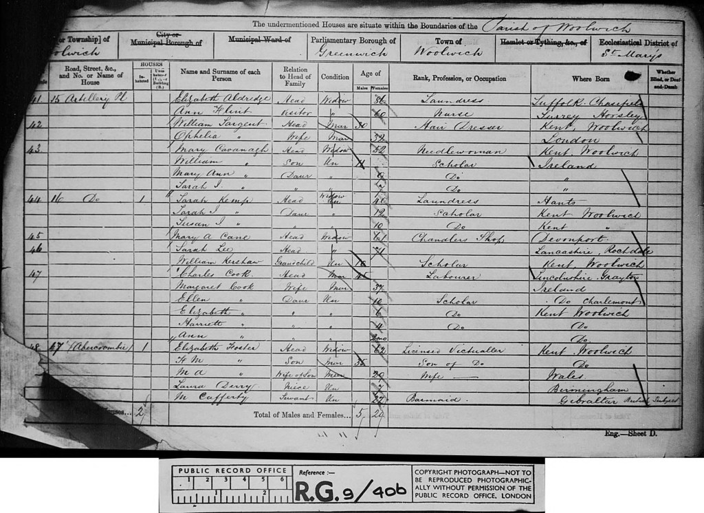On the evening of Sunday, the 3rd day of April, 1881, the United Kingdom Census captured a snapshot of life across the country, and among those recorded was Margarita Carroll. By this time, Margarita was living at 1 Waites Cottages in Woolwich, Kent, a modest home nestled amidst the industrial and military bustle of the town. Woolwich, with its close ties to the Royal Arsenal, was alive with activity, but life within the cottage was far more humble and quiet.