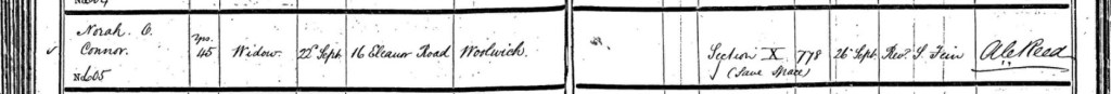 Honora’s final resting place was shared with two others: her late husband, Thomas O’Connor, and Parrick Bradley. The presence of these individuals in the same grave marked a quiet connection across generations, a reminder of the bonds that had defined their lives and the love that endured beyond death.