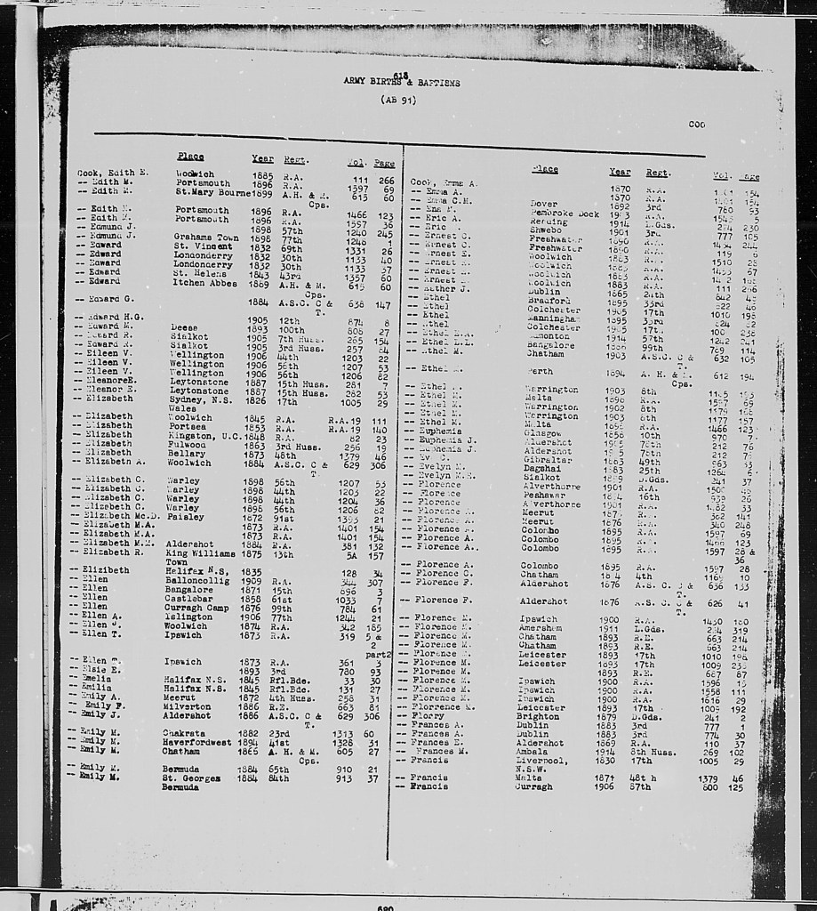 This absence could be due to several reasons, such as missing records or variations in how the name was registered. Sometimes, records were incomplete or not recorded properly, especially for children born to military families or in more remote locations. It may also be possible that the birth was not officially registered, a common issue during that time, particularly in certain regions or circumstances.
