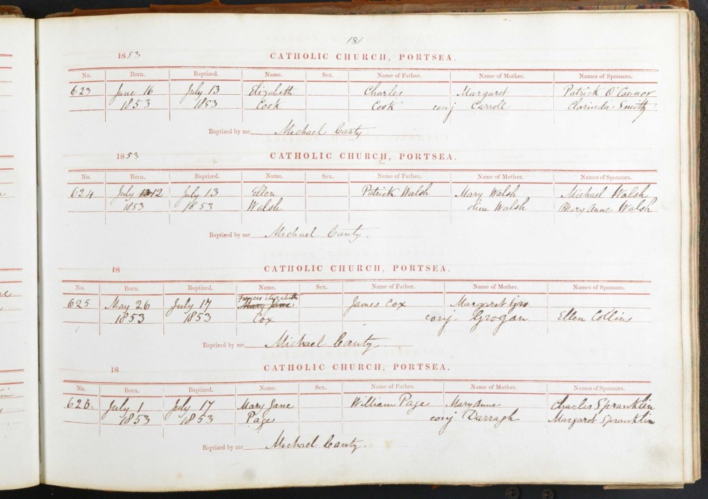 On July 13, 1853, Margarita and Charles took their daughter Elizabeth to be baptized at St. John’s Roman Catholic Cathedral on Bishop Crispian Way in Portsmouth, Hampshire, England. This sacred ceremony, held in the grand setting of the cathedral, was a profound moment of faith and family, marking Elizabeth’s introduction into the Church.