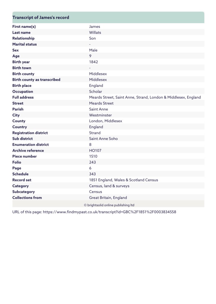 James came into the world on a Saturday evening, July 17, 1841, at their family home: 3 Meard Street, Saint Anne, Westminster, Middlesex, England.