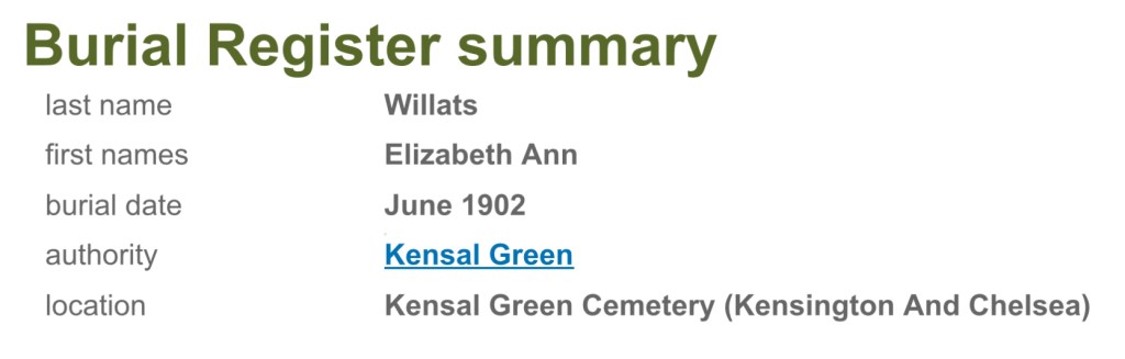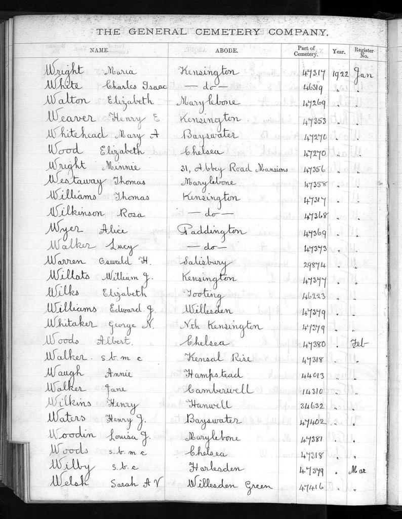James William Willats, known in his later years as William J. Willats, was laid to rest in the tranquil grounds of Kensal Green Cemetery in Kensington and Chelsea, London. His burial took place on Thursday, January 26, 1922, just days after his passing.