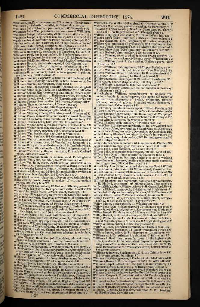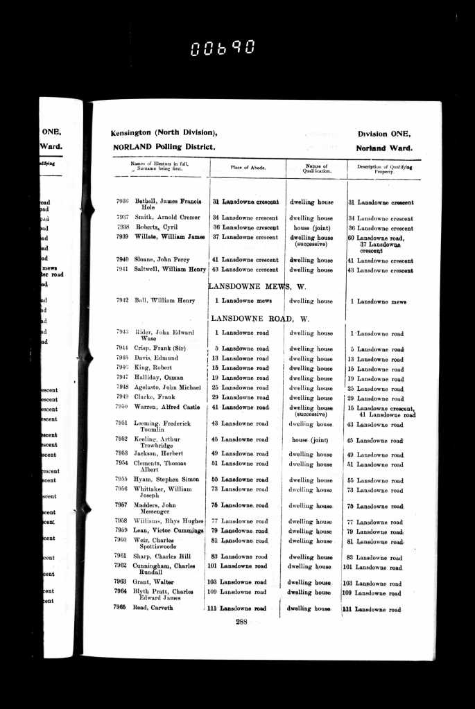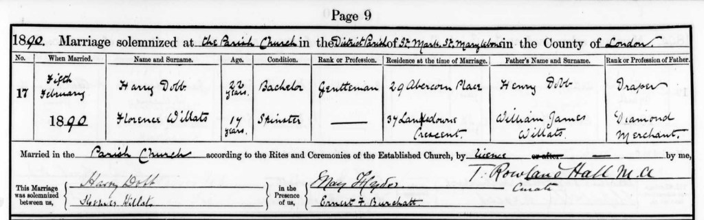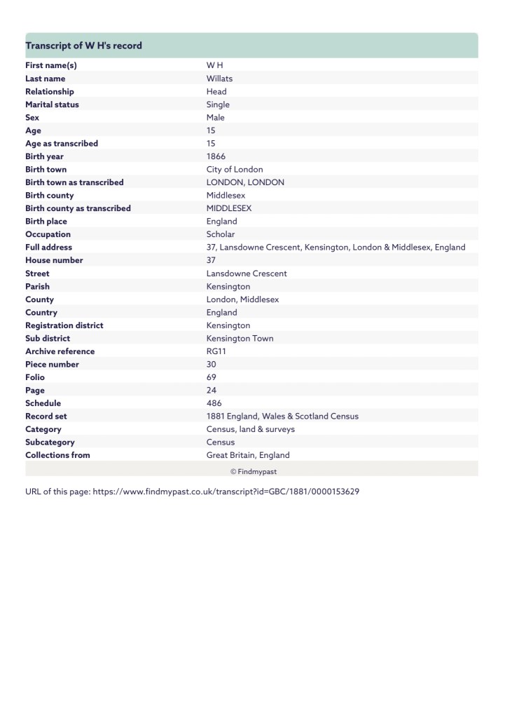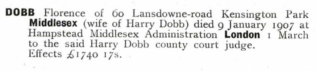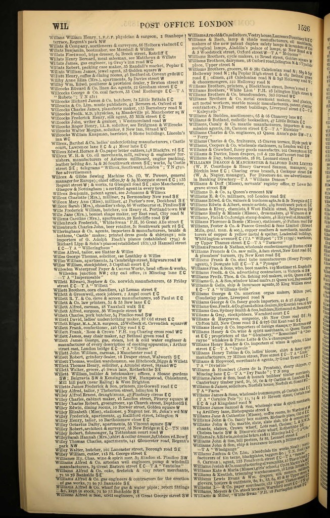 “WILLATS William James of 37 Lansdowne Crescent, Kensington, Middlesex, died 23 January 1922. Probate London 11 May to Dame Beatrice Pocock, widow, and Cecil Clarice Gwyn-Jones, spinster. Effects £8730 13s. 6d.”