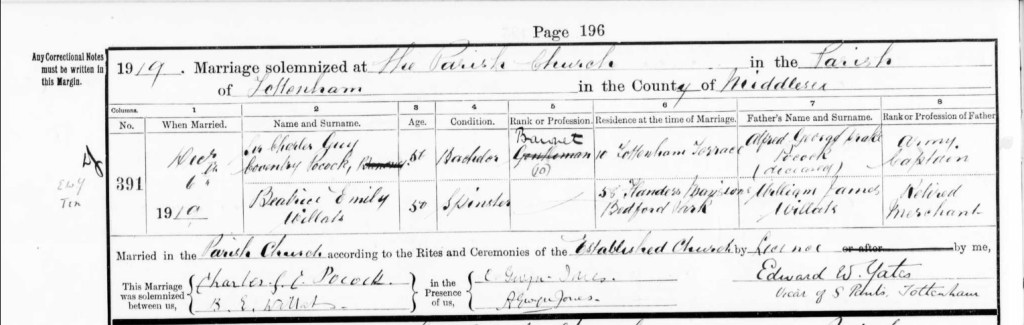 On a winter day, Saturday, December 6, 1919, James’s daughter, Beatrice Emily Willats, stood at the altar of All Hallows Church in Tottenham, Haringey, England, ready to embrace a new chapter in her life. At 57 years old, a dignified spinster, she was about to wed Sir Charles Guy Coventry Pocock, a 61-year-old bachelor. Their union was a poignant moment, blending histories and lives that had long run parallel before finally converging.
