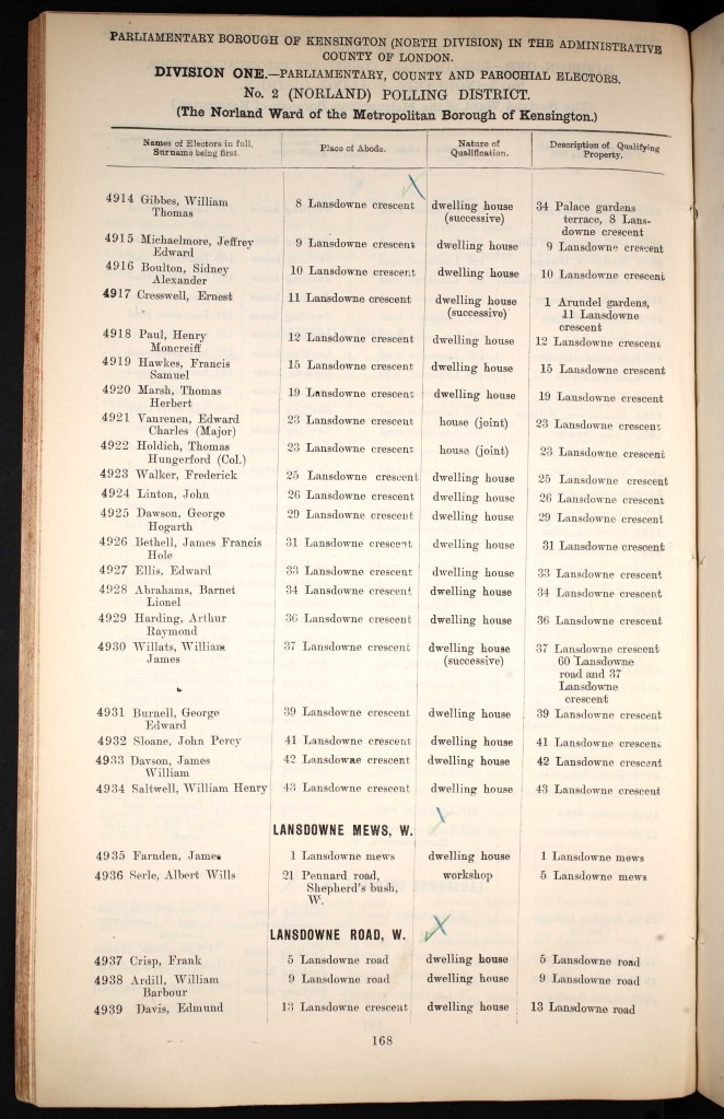 In addition to the census, James was also named in the 1912 Electoral Register, listed under the same abode at 37 Lansdowne Crescent, Kensington, London. This confirms that he was still there the following year, grounding his place in the fabric of this community, even as time moved forward.