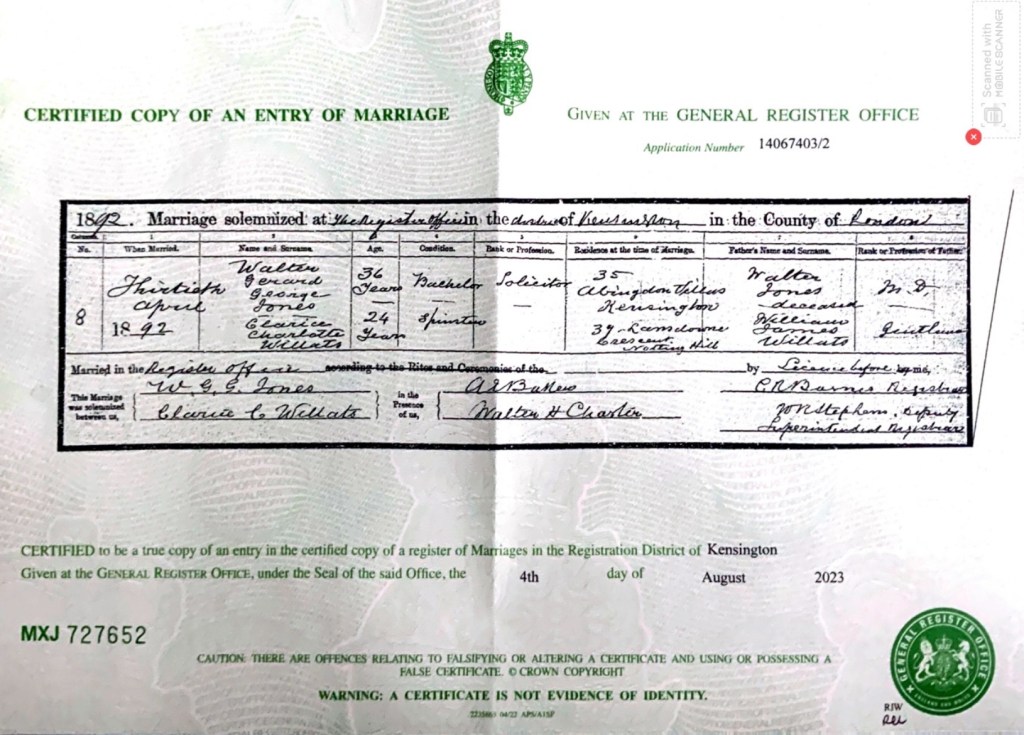 The last will and testament of William James Willats is a deeply personal and meaningful document, reflecting his enduring love and care for his family. Drafted on the 22nd of September, 1921, just a few months before his passing, it is a solemn acknowledgment of his desire to provide for his daughter Beatrice and his granddaughter Cecil Clarice Gwyn-Jones, ensuring their well-being and unity after his departure. In his will, William James revoked all previous testamentary dispositions and declared this as his final wishes. He devised and bequeathed all his real and personal estate, wherever situated, to his daughter Beatrice and granddaughter Cecil Clarice in equal shares, granting them equal importance in his eyes. To safeguard their futures, he included a clause stipulating that if one of them were to predecease him, the entirety of the estate would go to the survivor. This thoughtful provision demonstrated his wish to avoid any complexities or disputes, emphasizing his intent for harmony and security within the family. The will was signed by William James and acknowledged in the presence of two witnesses: Alice M. Jekyll of 17 Badinton Road, Balham, and Alfred Debenham, a solicitor from 52 and 53 Cheapside, London. Their presence affirmed the validity and solemnity of his final wishes. William James appointed both Beatrice and Cecil Clarice as executrices of the will, entrusting them with the responsibility of managing and distributing his estate as outlined in the document. As stated above, probate for the will was granted on the 11th of May, 1922, a few months after his passing, officially empowering Dame Beatrice Pocock and Cecil Clarice Gwyn-Jones to act as executrices. This legal acknowledgment brought his wishes into effect, ensuring that the provisions he had carefully outlined would be respected. The will stands as a testament to William James’s devotion to his family. It reflects his foresight, his unwavering sense of responsibility, and his hope to leave a lasting legacy of care and stability. This document, penned with the intention of easing the burden of loss for those he loved, continues to echo his thoughtful and compassionate nature. William James’s, last Will and Testament reads,