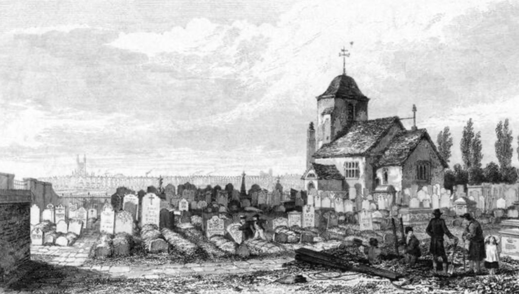 In 1821 James Weller Ladbroke (died 1847) and his architect Thomas Allason (1790–1852) began to plan an estate on land which now spans the southern end of Ladbroke Grove. From 1837 to 1841 a significant part of this land was used as the Hippodrome race-course. The hill that is now surmounted by St John’s was used by spectators as a natural grandstand to view the races. The Hippodrome was not however a financial success, and by 1843 it had closed, the circular racecourse soon to be replaced by crescents of stuccoed houses. St John’s Church, now a Grade II listed building, forms the high point and centrepiece of the Ladbroke estate, and is dedicated to St John the Evangelist. It was built to accommodate a congregation of 1,500, and was designed in the Early English style, the spire being notably similar in design to that of St Mary’s Church in Witney, Oxfordshire. The architecture of St John’s contrasts with the classical style of neighbouring St Peter’s, built a decade later. Money was raised by private subscription, in particular by means of two substantial loans of £2,000, one from Viscount Canning and one from entrepreneur Charles Blake, who also helped to finance St Peter’s. Work on St John’s was begun on 8 January 1844, when the foundation stone was laid by the Ven John Sinclair, Vicar of Kensington from 1842 to 1875, and Archdeacon of Middlesex. During Sinclair’s long incumbency (1842–1875), 19 parish churches were built in Kensington, of which St John’s was the first. It was consecrated by Dr Charles James Blomfield, Bishop of London, on 29 January 1845. Due to its rural location, the church was initially known as “St John in the Hayfields”.