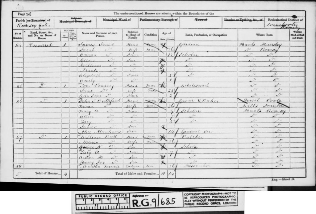 Romsey itself was continuing to thrive as a market town, with The Hundred remaining a key area for business and residence. With Arthur now actively working in the butchery, the family trade was being passed down through the generations, securing the Butt name within Romsey’s commercial history. The 1871 census captured a household that was not only maintaining its long-established trade but also adapting to the changing times, with education, skilled work, and commerce all intertwining under one roof.