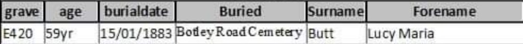 The cemetery, with its quiet, peaceful surroundings, offered a place of reflection and remembrance for the Butt family. The loss of Lucy at the age of 59 would have left a lasting impact on Arthur and his family, and her burial in Romsey Old Cemetery marked a significant moment in their lives. This cemetery, an integral part of Romsey's history, continues to serve as a reminder of the past, where many local families, including the Butt family, laid their loved ones to rest. Lucy’s grave in Grave E420 stands as a testament to her life and her important role in the family she left behind.