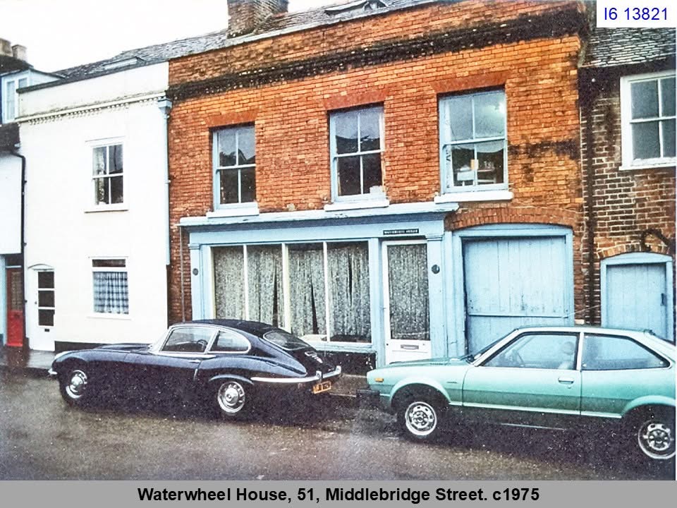 At that time, Waterwheel House, located on Middlebridge Street, was formerly known as Mr. Arthur Butt’s butcher’s shop. This property included not only the shop itself but also a yard, slaughterhouse, and a bacon drying loft, all essential components for a butcher’s business in the 19th century. These facilities would have been used for slaughtering livestock, preparing fresh meat for sale, and preserving bacon, key aspects of the butchery trade.