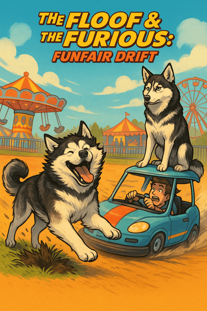 It was a Saturday morning so bright and breezy, it felt like the weather itself was trying to flirt with the entire planet. Strutting into this perfect day came Athena and Obito, the Bonnie and Clyde of the canine world, if Bonnie wore fur and Clyde had the coordination of a baby giraffe. No federal warrants yet, but give them time. Athena, an elegant husky with one eye dipped in celestial blue and the other in warm hot cocoa, moved with the grace of a runway model auditioning for Dog Vogue. She paused to sniff every flower like it owed her rent, and when faced with a puddle, gave it a disdainful side-eye that clearly said, “No thanks, peasant.” Obito, meanwhile, was a different breed of chaos. A Malamute in the awkward teenage phase where his paws looked like they were ordered in size XL by mistake, he bounded beside her with the raw energy of a toddler who’d just discovered sugar. He moved like someone had shouted, “The ground is lava!” and he believed them with his whole soul. His grin? Blinding. His toe beans? Dangerously cute. His coordination? Optional. They arrived at the local funfair, a place that looked like a unicorn had exploded after bingeing a pack of highlighters. Athena raised an eyebrow at the distant carousel, ears perked like she was tuning into a gossip channel. Obito, meanwhile, nearly passed out from joy upon catching the scent of cotton candy, popcorn, and the tears of terrified children. Their first challenge: The Walzer. Or as Athena dubbed it, Satan’s Salad Spinner. She gave it a stare that could curdle milk. Obito? Oh, he was ready. His tail was wagging like a metronome on espresso. As they queued up, Athena performed an immediate emergency sit-down strike. You could practically hear her inner monologue, “Listen. I have standards. And bones that I’d like to keep inside my body. Enjoy your impending trauma, brother.” Obito didn’t flinch. The moment they unhooked the leash, he launched himself onto the ride like a dog-shaped cannonball. And then it started spinning. Fast. Faster. FASTEST. At one point, we’re pretty sure Obito entered a new time zone. His face blurred into a perfect mix of ecstasy, horror, and "Did I just see God?" Meanwhile, Athena was off-stage digging up a section of grass like she was trying to open a portal to Narnia. The local gardeners walked by, saw the chaos, sighed the sigh of men who’ve seen things, floral war crimes, perhaps, and kept walking. Eventually, the Walzer spat Obito back out like a hairball, his fur now resembling a microwaved wig, and his tail wagging like it had a personal vendetta against gravity. Athena walked up coolly, as if to say, “You survived? Pity. I was eyeing your bed.” Next stop: BUMPER CARS. Now, Athena decided this was her moment to shine. She strutted into the bumper car arena like a royal entering a food court, nose high, tail floofed to max capacity. Obito, still drunk on centrifugal force, followed behind like a happy tank with no brakes. What happened next? Absolute carnage. Obito zoomed around the arena like he thought this was Mario Kart and he had three bananas and a grudge. He smashed into everything, cars, walls, a teenager’s dignity. His tail flailed like a furry helicopter rotor, powering him through pure joy and minimal control. Athena, meanwhile, studied the battlefield like a four-legged Napoleon. Then, with the elegance of a ninja ballerina, she leapt onto the roof of a bumper car. The driver, a tween with a slushie, shrieked like he’d just seen a tax audit. Athena stood tall, wind in her fur, face stoic, as if declaring, “I am the captain now.” For five glorious minutes, she rode that bumper car like a queen on a chariot of mild chaos, occasionally ducking stray paws and wayward elbows, but never once losing her poise. After their triumph (and minor public disturbance) at the Walzer and bumper cars, Athena and Obito were just warming up. Fueled by sheer determination, adrenaline, and probably popcorn crumbs, they trotted further into the funfair with the unshakable confidence of two four-legged tornadoes in fur coats. Their next target, the sweet stall. It started innocently enough. A waft of sugary heaven drifted over the candy-striped tents, and Obito's nose twitched like a radar dish locking onto its target. Without warning, and faster than his oversized paws should logically allow, Obito launched himself at the sweet stall like a cannonball made of fur and enthusiasm. "NOOOO, NOT THE TAFFY!" the stall owner cried, but it was too late. Obito, tongue flailing like a wet flag in the wind, was knee-deep in gummy bears, his tail sweeping jawbreakers into the crowd like a living, fluffy trebuchet. His entire snout disappeared into a bucket labeled "DO NOT TOUCH – SERIOUSLY," and he emerged with lollipops skewered between his teeth like some kind of sugar-coated porcupine. Meanwhile, Athena had her eye on a different prize. With all the elegance of a wolf at a royal garden party, she tip-pawed over to the balloon dart game. She wasn’t here to win a prize. Oh no. She had a personal vendetta against balloons. No one knows what started it, maybe a traumatic puppy incident involving a helium escape, but Athena and balloons did not coexist peacefully. In less than thirty seconds, she’d popped eleven of them just by stepping on them and giving each a satisfied huff, sending small children into fits of delighted panic. "Aww, look! She's playing the game!" said a kind woman nearby. "Madam," replied the operator, staring in horror, "those were £80-a-pop custom unicorn balloons." Athena responded by gracefully stomping a twelfth. Their next stop was the pièce de résistance of the fair, The Big Wheel. What better way to see the chaos they had created than from the sky? Obito was skeptical. His past experience with vertical movement was limited to falling off the sofa. But Athena, with her Princess-level confidence and complete disregard for safety regulations, m
