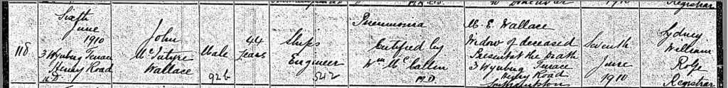 On Monday, the 6th day of June, 1910, a profound sorrow settled over the home at Number 3, Wynberg Terrace, Henry Road, Shirley, Southampton. Within those walls, 44-year-old John McIntyre Wallace, a dedicated ships engineer, took his final breath, succumbing to pneumonia. The illness, relentless and unforgiving, had drained the life from a man who had likely spent his years working tirelessly in the world of maritime engineering, a profession demanding both skill and endurance.