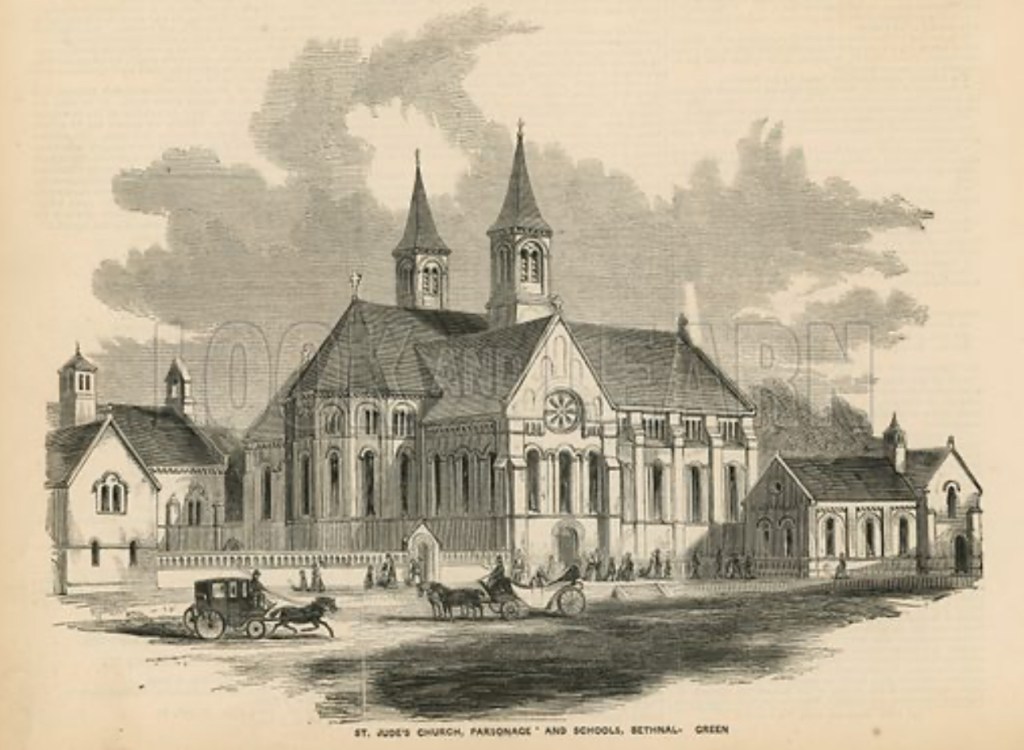 St Jude's Church was established in 1844 as a chapel of ease for the ancient parish of St Matthew Bethnal Green. The church was constructed to serve the growing population in the area, providing a place of worship and community gathering. The church's records, including baptisms from July 1846 to March 1945 and marriages from August 1846 to September 1951, are preserved and accessible for genealogical research. These records offer valuable insights into the lives of individuals and families in Bethnal Green during that period. St Jude's Church was founded in 1844 and closed after 1951. During its operation, the church played a significant role in the community, offering services and support to the residents of Bethnal Green. In 1904, a photograph of St Jude's Church was taken, capturing its architectural features and the surrounding area. This image provides a historical glimpse into the church's appearance and its place within the community at the time. Today, the legacy of St Jude's Church continues through its historical records and the memories of those who were part of its congregation. The church's history reflects the broader social and cultural changes in Bethnal Green and London during the 19th and early 20th centuries.