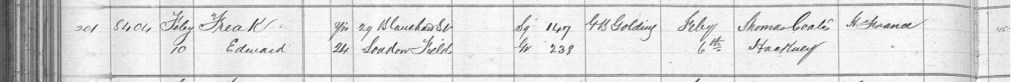 The loss of a child is a grief beyond words, and for William and Eliza, the heartbreak of losing their four-month-old son, Alfred James Freak, on Monday, the 12th day of August 1889, must have been unbearable. Their home at Number 113, Boston Street, Haggerston, had been filled with the small, sweet sounds of their infant son, the tiny cries, the gurgles of contentment, the soft sighs as he drifted to sleep in his mother’s arms. But on that fateful day, those sounds were silenced forever. Eliza, ever the devoted mother, was with him as he took his final breaths. She had already known too well the weight of losing a child, but no amount of past sorrow could have prepared her for this moment. Holding him, whispering words of comfort, she would have done anything to trade places with him. But there was nothing more she could do, except love him until the very last moment. With a mother’s courage, despite the overwhelming grief pressing upon her, Eliza made the journey to the Shoreditch registrar’s office on Wednesday, the 14th day of August, to do what no parent should ever have to do, register the death of their child. The registrar, A.A. Lough, recorded in the death register the cruel reality: Alfred James Freak, just four months old, had passed away at home, the son of William Harry Freak, a Boot Laster, and Eliza Freak, formerly Stockwell. The cause of death was noted as diarrhoea and exhaustion, certified by C.E. Armand Semple, a physician and medical author whose knowledge of pathology and disease was vast, but even he could not save little Alfred. William, though strong in his trade and steadfast for his family, must have felt the weight of this loss deeply. He had worked tirelessly to provide for his wife and children, yet no amount of skill or effort could protect them from the cruel hand of fate. He had already buried his infant sons Philip Henry and Philip Freak, and now, once again, he was forced to say goodbye to another child. Their home, once filled with the soft coos of a newborn, must have felt unbearably quiet in the days that followed. There would be no first words, no wobbly first steps, no laughter from a little boy growing into childhood. Instead, there was only the ache of absence, a space in their hearts that could never truly be filled.