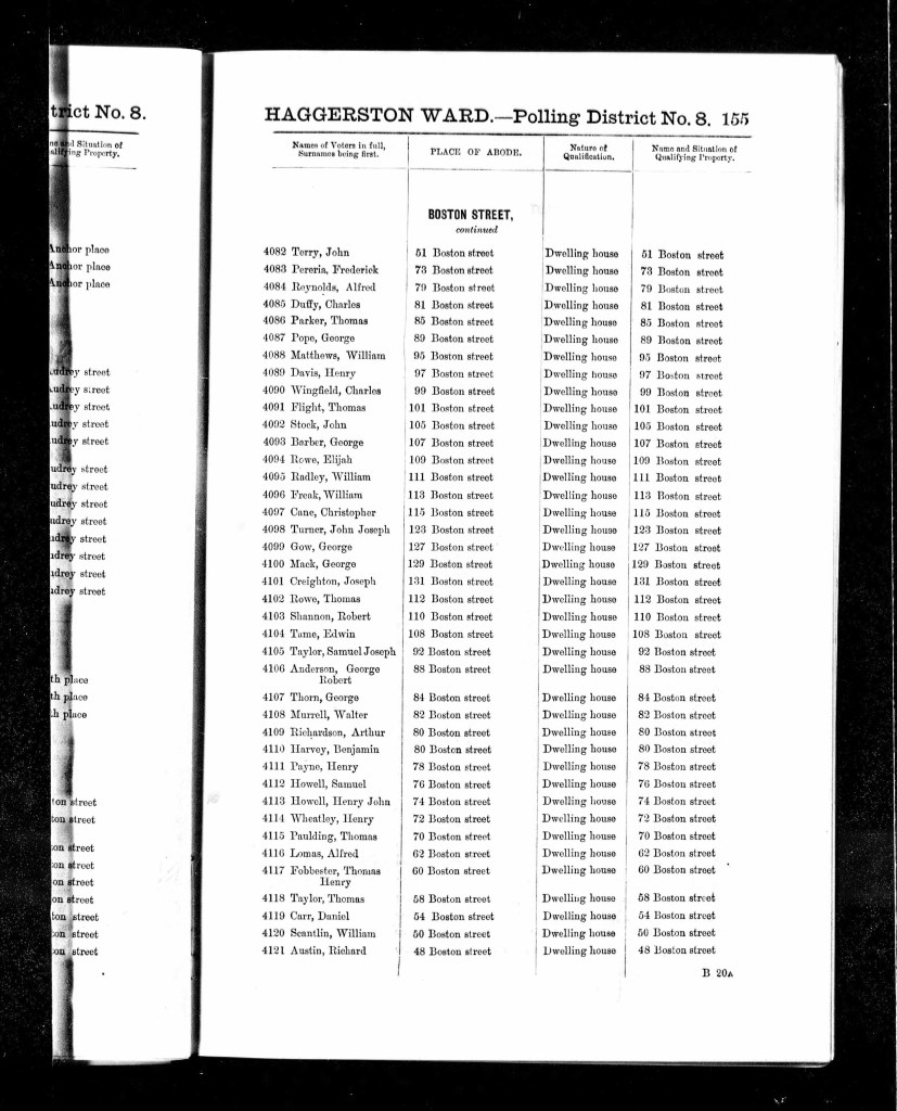 Strangely, even after his passing in July 1891, William’s name appeared one final time in the records. The 1892 London, England, Electoral Register listed him as residing at Number 113, Boston Street, Haggerston, Middlesex. Of course, William was no longer there, his name was simply carried over, a ghost in the bureaucracy of paperwork. But seeing his name in print, as if he were still alive, must have been jarring for Eliza. A cruel reminder of the life she had so suddenly lost. Perhaps, in some small way, it was also a bittersweet comfort, a fleeting moment where the world still acknowledged William’s existence. A whisper of his presence in the place where he had worked, lived, and loved his family. But the reality remained: William was gone, and Eliza was left to navigate life without him.