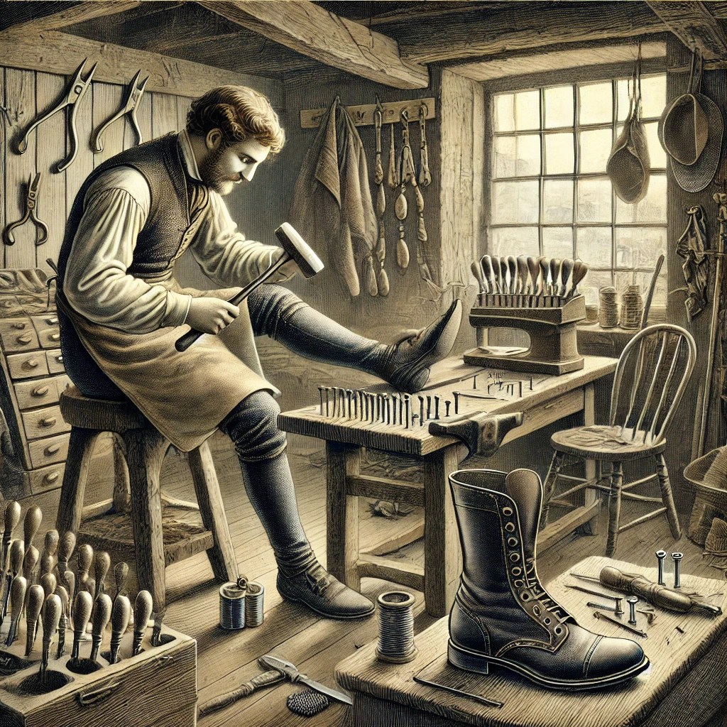 A boot riveter in the 1800s played a crucial role in the shoemaking industry, particularly as the demand for durable footwear grew during the Industrial Revolution. The job itself involved fastening different parts of a boot together using small metal rivets, ensuring that the sole and upper were securely joined. Before the widespread adoption of sewing machines and industrial adhesives, rivets provided a strong and long-lasting bond, especially for working-class boots that needed to withstand heavy use. Boot riveters typically worked in crowded factories or small workshops, where the sound of hammering filled the air as workers drove rivets into thick leather. The process was repetitive and physically demanding, requiring precision and strength to pierce the leather and secure each rivet in place. Factories often had poor ventilation, and workers would be exposed to dust, glue fumes, and the constant noise of machinery. Injuries were common, as hammers and sharp tools were used throughout the day, and long hours bent over workbenches took a toll on the body. The history of boot riveting is closely tied to the rise of mass production in the footwear industry. Before industrialization, boots and shoes were made almost entirely by hand, a slow and labor-intensive process carried out by skilled craftsmen. However, by the mid-19th century, factories were adopting mechanized techniques, allowing for faster production and lower costs. Riveting was one of the key innovations in boot manufacturing, as it sped up the assembly process while making the footwear more durable. It became especially important in military boot production, as soldiers needed strong, well-made boots that could endure harsh conditions. Despite the importance of their work, boot riveters were not highly paid. Wages varied depending on location and employer, but most riveters earned only a modest living, often struggling to support their families. The rise of mechanization meant that factory owners sought ways to cut costs, sometimes replacing skilled workers with machines or cheaper labor. Child labor was also common in the industry, with young boys and girls employed to assist in boot production for a fraction of an adult’s wages. Working conditions were harsh, with shifts often lasting twelve or more hours a day. In large factories, workers had little control over their environment, and their jobs could be lost if they failed to meet production quotas. The growing labor movement in the late 19th century led to some improvements in wages and conditions, but for many boot riveters, work remained hard, monotonous, and poorly compensated. Despite these challenges, the trade provided a sense of stability for those who could secure steady employment. Riveters took pride in their craftsmanship, knowing that their work helped produce sturdy boots worn by laborers, soldiers, and everyday people across the country. Many families had multiple generations working in the footwear industry, passing down skills and knowledge from father to son. Though often overlooked in history, boot riveters played a vital role in the industrial era, contributing to an industry that shaped fashion, labor, and economic growth throughout the 19th century.