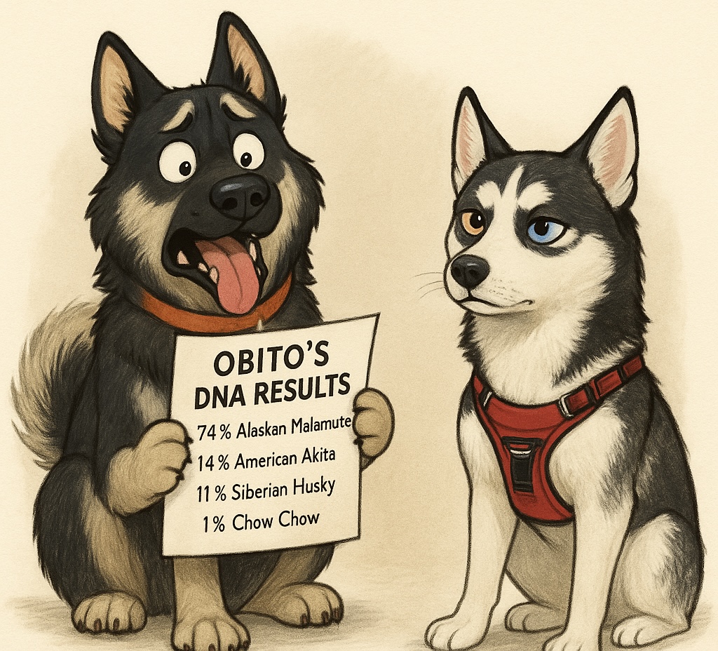 Once upon a time, in a land where couches were mere hurdles, and lawns were not so much “green spaces” as they were “crime scenes,” lived two majestic, slightly unhinged, fur-covered lunatics, Athena, the elegant, bi-eyed husky empress also known as Princess or Miss Pants, and her little (but absolutely not little) brother, Obito, the clumsiest, floppiest, tongue-heaviest Love Bug in the kingdom, known in scientific circles as Mr. Toe Beans.
