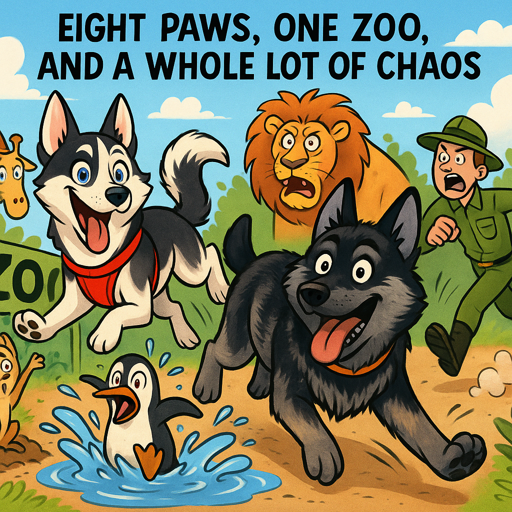 It was one of those days when the sun beamed like it was on a mission to make everything sparkle, and Athena the husky, with her dazzling blue and chestnut bi-eyes, was absolutely convinced that today was going to be the best day ever. And of course, because Athena was the boss of everything in the world (or at least in the garden, the living room, and occasionally, the entire county), she was determined that it would be an adventure for the ages. In tow was her ever-enthusiastic, ever-awkward, ever-hungry malamute brother, Obito, who, despite being as big as a small horse and still trying to figure out how to navigate his oversized paws, was just as determined to enjoy the day. Athena, with her elegant, almost regal stride, completely at odds with her usual chaos, led the way to the car, her paws light and bouncy. She was always the picture of grace until it was time to leap over something. And today was no exception. With no warning, she took a running start and launched herself right over the picnic table in the garden, her tail a blur of grey and white. "Watch this, Obito!" she seemed to say, her eyes gleaming with mischievous delight. Obito, who had never been one to miss out on a challenge, attempted the same leap, but only managed to catch his back foot on the table, sending him face-first into the grass. He rolled, belly up, giving his signature goofy grin as if to say, “Nailed it!” Once in the car, Athena made it abundantly clear that she was not interested in sitting nicely. She squirmed, shuffled, and flopped into every single seat, trying to get comfortable while simultaneously asserting her dominance over the space. Meanwhile, Obito, the ever-optimistic and clumsy ball of fluff, was doing his best to curl up into a position that would make a yoga instructor proud, but he ended up taking up the entire backseat by spreading his legs out like he was trying to do the splits. His oversized paws, which were still growing into their giant forms, made an adorable “plop, plop” sound against the seat as he shifted. Every so often, he would offer Athena a wet kiss on the ear to show his excitement for the day ahead, his tongue making the most horrendous slurping noise that sounded like a vacuum cleaner trying to suck up a tennis ball. Upon arrival at Marwell Zoo, Athena immediately assumed that this was her personal kingdom. As she got out of the car, she strutted like a diva on the red carpet, her fluffy tail waving in the breeze. She was the picture of elegance, until she spotted a pigeon. The pigeon made the mistake of not flying away quickly enough, and Athena took that as a personal challenge. With one mighty lunge, she turned into a furball of fury, her eyes locked on the unsuspecting bird, her paws flailing like a windmill in a hurricane. The pigeon, to its credit, soared away with the grace of an Olympic athlete. Athena? She ended up face-planting into a flower bed, paws up in the air, looking utterly confused as to why the world wasn’t obeying her every command. Obito, ever the supportive brother, plodded over to her, gave her a giant sniff, and decided the best way to cheer her up was to plant a massive kiss on her face. Athena, who was no stranger to Obito’s wet, sloppy affection, looked up at him, blinking her stunning eyes in a mix of annoyance and adoration. "Get off me, you overgrown love bug," she muttered. But of course, her heart melted, because when Obito gave you a wet kiss, it was like being hit with a tidal wave of joy. There was no resisting that face. As they wandered through the zoo, Athena maintained her air of superiority, especially around the giraffes. She stared at them with the intensity of someone trying to solve the world’s biggest puzzle. Athena had always thought her neck was far superior to the giraffe’s, and she made it her mission to prove it. With a sudden burst of energy, she attempted to jump onto the giraffe enclosure to have a better look. What followed was a series of events that could only be described as “chaos in slow motion.” Athena leapt with the elegance of a ballerina, only to miss the edge by a fraction of an inch. She fell into the dirt, paws flailing, landing in a heap. Obito, who had been standing by and watching in utter disbelief, decided that this was his moment to shine. He trotted up to the fallen Athena, wagged his tail furiously, and plopped down next to her with a giant “thud,” completely covering her in the dirt. The day continued in much the same fashion. Athena, ever the curious soul, decided to dig up a section of the lawn near the flamingo pond. She was convinced there was something buried there, a secret treasure, perhaps, or an ancient relic. Obito, without hesitation, joined in. The two of them dug like there was no tomorrow, sending dirt flying in every direction. Visitors stood back, either laughing or gasping in horror as the pair wreaked havoc on the pristine grass. Athena’s nose was completely covered in dirt, her chest puffed out proudly as though she had just discovered buried treasure. Obito, meanwhile, was doing what he did best, rolling around in the dirt, smiling that ridiculous smile of his that made every passerby stop and laugh. He had no idea what was happening, but he was all in, because when Athena led the way, there was no such thing as a bad idea. After the dirt fiasco, they moved on to the monkeys, who were swinging around with far more grace than either of them could ever hope for. Athena watched with wide-eyed fascination, her head tilting back and forth as she tried to figure out how on earth they managed to climb trees without making a complete mess of themselves. Obito, in the meantime, was doing his best monkey impression, trying to climb a tree stump. He scrambled up the side, got halfway, and then, plop, he fell backwards, landing squarely on his bottom. He looked at Athena, his big brown eyes blinking innocently as if to say, "Did you see that? I almost did it!"
