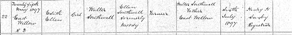 A few weeks later, on Tuesday, the 6th day of July, 1897, Walter Southwell made the familiar journey to Romsey to officially register Edith’s birth. Nearly four miles from East Wellow, Romsey was the nearest market town, its bustling streets and historic abbey offering a contrast to the quiet farmlands surrounding it. At the registrar’s office, Henry H. Saxby recorded the details in the official registry, Edith Ellen Southwell, born on the 25th of May, daughter of Walter and Ellen Southwell of East Wellow. Walter, now firmly established as a farmer, signed his name, ensuring that Edith’s place in history was preserved in ink and record.