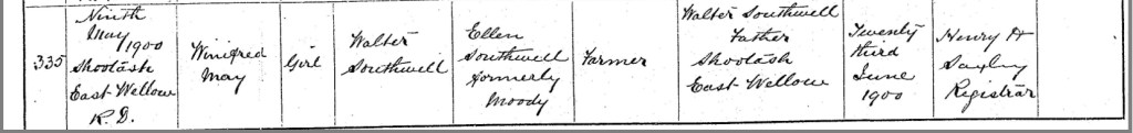 As spring turned to summer in the year 1900, the Southwell family of Shootash, East Wellow, welcomed another child into their home. On Wednesday, the 9th day of May, Ellen Southwell gave birth to a daughter, whom she and Walter named Winifred May Southwell. The arrival of a new baby was always a time of both joy and adjustment, especially in a growing farming family where each child would one day take their place in the rhythms of rural life.