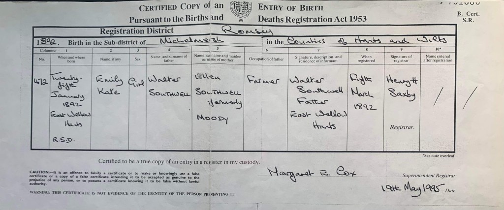 On Sunday, the 28th day of February, 1892, in the quiet village of East Wellow, Walter and Ellen Southwell carried their infant daughter, Emily Kate, to Saint Margaret’s Church to be baptized. The morning air would have been crisp, the fields still touched with winter’s lingering frost, as family and neighbors gathered beneath the weathered stone walls of the ancient church.