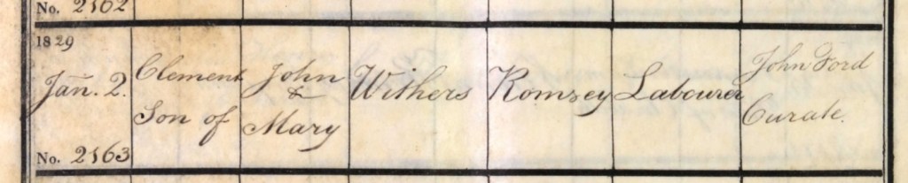 In the early days of 1829, another branch quietly blossomed on the Withers family tree with the birth of Clement Withers, the son of John and Mary. Born in Romsey, Hampshire, like so many of his siblings before him, Clement’s arrival added another cherished child to a growing, working-class family whose story was deeply woven into the fabric of their hometown. On Friday, the 2nd day of January 1829, Clement was baptised at Romsey Abbey, the church that had already held so many important moments for the Withers family. The ceremony was once again performed by Curate John Ford, the steadfast spiritual figure of the parish whose name appears again and again beside the names of this family in the records. With care, he wrote Clement’s name into the baptism register, noting him as the son of John Withers, a labourer, and Mary Withers, of Romsey. There is something quietly significant in Clement’s baptism, it marked not just another child born, but a continuation of a deeply rooted life in Romsey. Despite the hardships and limitations of the time, John and Mary continued to build their family, raising their children within the same church walls where they had once pledged their own vows. Each baptism was not only a rite of faith, but a thread in a much larger story, one of love, struggle, perseverance, and legacy. Clement’s name now lives alongside those of his siblings and ancestors in the timeworn records of Romsey Abbey, etched there with ink and intention, holding his place in the unfolding life of the Withers family.