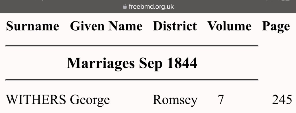 John and Mary’s son, 23-year-old George Withers, married widow Jane Small, formerly Mitchell, in Romsey, Hampshire, England, on Sunday the 28th day of July 1844. As with other parts of this life story, I want to be open and honest with you. Due to the ever-increasing costs of research, subscription fees, and the sheer number of certificates needed for each individual, I have had to make the difficult decision, through gritted teeth, not to purchase every marriage certificate, including George and Jane’s. It is a decision I have not made lightly. I feel the absence of these documents keenly, as my heart wants every story to be complete and fully documented, but the realities of cost and the need to continue writing the broader tapestry of my family's history have forced my hand. I am truly sorry and hope you can understand the position I am in. For those who would like to have an official copy of George and Jane’s marriage certificate, it can be ordered using the following General Register Office reference: Gro Ref - Marriages, September Quarter, 1844, WITHERS, George, SMALL, Jane, Romsey, Volume 7, Page 245. Even without every document in hand, George’s story, and indeed John’s, will continue to be told with as much heart, care, and respect as possible.