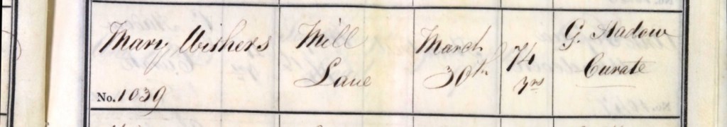 John’s mother, Mary Withers, formerly Grant, was laid to rest on Sunday the 30th day of March 1845 in Romsey, Hampshire, England, either within the grounds of Romsey Abbey or at the Old Cemetery on Botley Road. Curate G. Hadow performed the solemn burial service and carefully recorded Mary’s details in the parish burial register. He noted that 74-year-old Mary Withers, of Mill Lane, was buried on the 30th of March 1845. It was a quiet end to a long life, and although the exact resting place is uncertain, there is comfort in knowing she was buried close to the heart of the community where she had lived out her days.