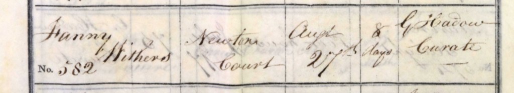 John and Mary’s daughter, Fanny, was laid to rest on Friday the 27th day of August 1841 in Romsey, Hampshire, England. It is uncertain whether she was buried in the grounds of Romsey Abbey or at the Romsey Old Cemetery on Botley Road, but her final resting place was in the same town where she had been born. Curate G Hadow, of Romsey Abbey, conducted the burial and meticulously recorded the details in the burial register. He noted that Fanny Withers, just 8 days old, of Newton Court, was buried on the 27th of August. Fanny’s brief life was marked by love, loss, and a deep sense of grief from her parents, who had already been through so much. Her burial, though brief in the life it commemorated, marked a moment of finality for John and Mary, a moment they would undoubtedly carry with them forever.