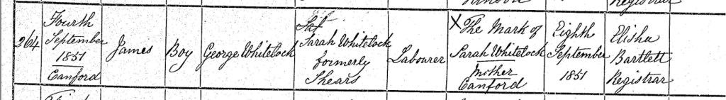 Frank’s younger brother, James Whitelock, was born on Thursday, the 4th day of September 1851, in the familiar surroundings of Cranford, Dorset, England. Just four days later, on Monday, the 8th day of September, their mother Sarah made the journey to Poole to formally register her newborn son's arrival. It was a journey made by many mothers of the time, often alone and on foot, carrying both the responsibility of motherhood and the weight of official duty. Registrar Elisha Bartlett, who had by then become well acquainted with the Whitelock family, carefully entered James’s birth into the register. He recorded that James, a boy, was the son of George Whitelock, a Labourer, and Sarah Whitelock, formerly Shears, of Cranford. In keeping with the customs of the time, and as she had done with her other children, Sarah signed the official document with her mark, an X, speaking quietly to the challenges of literacy that so many working-class families faced in Victorian England. Though small in detail, this simple act of registration captured not just the birth of a child, but a moment in the continuing story of a growing family. Each new name added to the register told of hope, perseverance, and the deeply rooted ties that held the Whitelocks together as they carved out their lives in the Dorset countryside.