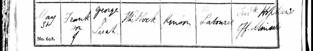 On Wednesday, the 25th day of June 1856, heartbreak once again found its way into the Whitelock home. Ten-month-old Frederick, the youngest of the family, slipped quietly from this world in Canford, Dorset. His mother, Sarah, was by his side when he took his final breath, an image almost too heavy to bear, yet deeply telling of the quiet strength she carried within her. The same hands that had soothed him through teething and tucked him in at night were there to comfort him through his final hours. The very next day, on Thursday the 26th day of June, Sarah made the unimaginable journey into Poole to register her baby boy’s passing. With a heart still raw and arms now empty, she stepped into the registrar’s office and faced the formalities of death. Deputy Registrar George Holloway recorded the loss in the official register. He noted that Frederick, just ten months old, the son of George Whitelock, a labourer, had died from “Teething Pneumonia” a cruel and all-too-common illness of the time. Holloway confirmed that the death had been certified and wrote down Sarah’s name, signing off the document with her mark, a simple and trembling X. For Frank, still only a boy himself, the death of another sibling would have cast a shadow across the summer of his tenth year. The losses were becoming part of the rhythm of his early life, a sobering reality that would stay tucked into the folds of his memory, even as he continued to grow and carry the family name forward. Frederick’s story may have been brief, but he was loved, cherished, and remembered, his tiny footprints forever part of the path the Whitelock family walked together, step by step.