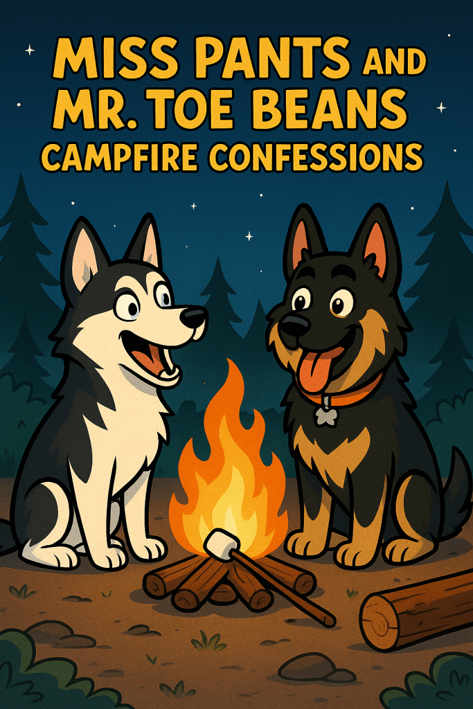 Deep in the heart of the forest, nestled beside a gently gurgling river and surrounded by towering pine trees that whispered secrets to the wind, a small camping circle had been formed. In the middle stood a crackling fire, cheerfully spitting sparks into the twilight, casting flickering shadows on a crowd of eager, tail-wagging adventurers. The time had come for that sacred canine tradition, Campfire Confessions. Athena, the reigning queen of grace and mischief, sat perched on a folded-up camping blanket like she was on a throne, fur glistening with the last glimmers of sunset. One eye the color of freshly cracked ice, the other like warm, melted chocolate, she surveyed the circle with regal poise. Her tail swished behind her like a velvet curtain with attitude. The glow of the fire made her bi-eyes sparkle with a mischievous glee that suggested she was about to traumatize at least three dogs and a possum with her story. To her right was Obito, who had somehow managed to wear not one, but two marshmallows stuck to his forehead like confused unicorn horns. At Eleven months old, he had the proportions of a Clydesdale and the spatial awareness of a bumper car. He sat, tongue lolling, massive paws splayed like fluffy cinder blocks, with an expression that screamed “I have thoughts, but none of them are allowed to drive.” Every so often, he leaned in to give Athena a big, wet, unsolicited kiss, earning a dramatic sigh and a look of betrayal from his big sister. “Alright, dogs and dudes,” Athena announced, her voice low and dramatic, doing her best to sound like a haunted but well-read librarian. “Tonight, we tell the truth. The raw, unfiltered horror of summer past.” Gasps echoed around the fire. A golden retriever dropped a stick in shock. A Chihuahua fainted (though to be fair, she did that every time the wind changed). Athena stood, ears erect, tail poised like a punctuation mark. “It was a dark and stormy night, actually no, it was sunny and 24 degrees with a mild breeze. Anyway. There I was, basking in my royal garden, overseeing my flower kingdom. The roses were thriving, the daisies were blooming, and the lawn—ah, the lawn was pristine. Until I remembered something. Something horrifying.” The circle leaned in. Even the possum, who wasn’t technically invited, stopped pretending to be dead. “I remembered… there were TREASURES beneath the surface.” She paused dramatically. “So naturally, I dug. And dug. And dug until the garden looked like it had been used for artillery practice. I unearthed a sock from 2017, a suspiciously buried chew toy I don’t remember owning, and half a sandwich, which I assume was a peace offering from the squirrels.” There was a collective “ooooh” from the crowd. “But just when I thought I had conquered the backyard, I heard the sound. A shriek. A human. It was Mum. She looked at her flowerbed and screamed like I had buried a body. Which I hadn’t. This time. But apparently, roses don’t thrive when you relocate them… violently.” Obito snorted and started giggling, which for him meant a full-body wiggle followed by an accidental sneeze that launched one of the marshmallows into the fire. Athena rolled her eyes. “Anyway. That was the day I was unfairly nicknamed ‘Miss Pants’, for reasons unknown and slanderous. But let’s move on. Obito. Your turn.” Obito stood up too fast, tripped over his own paw, and body-slammed a cooler. When he finally settled, one ear was flopped inside out, and he looked like a very large toddler who had just discovered gravity. He beamed. “Okay so, guys. Listen. I was being SO sneaky. Like a ninja! Like… a marshmallow-hunting ninja.” Athena facepawed. Obito continued, eyes wide with enthusiasm. “So it was late, like super-late. Like 9 p.m. I saw the humans roasting marshmallows. And I thought: What if… I became… the marshmallow? So I crept, like a whisper, like fog in the night, toward the bag.” “Obito, you tripped over a lantern and screamed ‘SNEAK MODE!’ out loud,” Athena interjected. “Semantics,” Obito replied, proudly. “I grabbed the bag with my mouth. Victory was mine. Until I realised something… marshmallow bags are plastic. I bit down, and the entire thing popped like a balloon. Marshmallows everywhere. Raining from the sky. I panicked. Tried to hide them. Ate five. Got them stuck to my nose. Accidentally flung one at a cat. Cat is still mad.” A Labrador in the circle burst into a fit of howling laughter. The possum blinked twice and collapsed again. Obito wasn’t done. “Then the worst part. I tried to bury the evidence. In the tent. With Mum’s sleeping bag. Which is how I earned the noble and ancient title of Mr Toe Beans the Sticky.” The campfire erupted into pure canine chaos. Howls of laughter. Dogs rolling on their backs. One spaniel laughed so hard she rolled into the river and had to be fished out by a border collie with a flashlight. Athena gave a small, satisfied smile. “And that, friends, is the horror of the marshmallow massacre. We are survivors.” Obito nodded solemnly, even though he had marshmallow fluff in his eyebrow and hadn’t noticed. As the night wore on and the stars twinkled overhead like cosmic tennis balls, the dogs continued to share tales of summer misadventures. There were stories of squirrel uprisings, frisbee betrayals, one incident involving peanut butter and a drone, and of course, the time a Great Dane mistook a skunk for a pillow. But none topped the sheer tragic comedy of Athena and Obito’s stories. And as the fire crackled down to embers and the snores of a dozen exhausted dogs rose into the night, Athena curled into her blanket like a queen retreating into velvet robes. Obito flopped beside her with a happy grunt, one giant paw landing squarely on her tail. She sighed. He drooled. And together, the unlikely duo of elegance and chaos drifted into dreams of garden excavations, flying marshmallows, and 