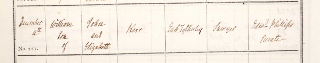 On Sunday, the 4th day of December, 1836, the village of East Tytherley, Hampshire, saw yet another moment of joy as William Carr, the youngest son of John and Elizabeth Carr, was baptised at St. Peter's Church. This was a day of quiet significance, one that would be etched into the fabric of both the family and the village’s history. Curate Edward Phillips, ever the steady hand in the sacred duties of the church, performed the baptismal service with reverence, marking the occasion as an important moment in the life of the Carr family. The church, with its stone walls steeped in centuries of tradition, would have been filled with the soft murmurs of prayer and the peaceful sound of water being poured. This simple ceremony, taking place in the presence of the village’s faithful, marked William's formal welcome into the Christian faith. The details of William’s baptism were carefully recorded in the church’s register, where Curate Phillips wrote with precision, “William, son of John Kerr, a sewyer, and Elizabeth Kerr, of East Tytherley, was baptised on December 4th, No. 221.” The slight variations in spelling “Kerr” instead of “Carr” reflect the ways in which names were sometimes recorded phonetically, a practice common in those times, but the meaning and significance of the event remained clear. In the quiet beauty of that December Sunday, as the service unfolded, Henry and his siblings must have watched with affection and pride as their new brother was christened, becoming a part of the community’s spiritual life. The baptism was not just a ritual; it was a moment where the family, the church, and the village itself acknowledged the presence of a new life, a new soul to be nurtured, loved, and protected. As William was baptised and his name recorded for posterity in the register, the Carr family’s story continued to unfold. His entry in the baptismal book would travel through time, becoming a part of the legacy of the Carr family in East Tytherley, a legacy rooted in love, faith, and the simple yet profound acts that marked their lives. Each generation, with each baptism, carried forward the tradition of family and community, and William’s baptism on that December day was no exception. It was a moment of quiet celebration, one that would remain cherished in the hearts of the Carrs for years to come.