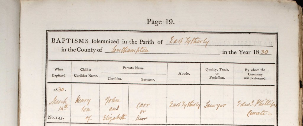 In the early summer of 1833, on Sunday, the 9th day of June, another moment of joy and tradition marked the life of the Carr family in East Tytherley. It was on this day that George Carr, the younger brother of Henry, was baptised in the hallowed walls of St. Peter’s Church, much like his older sibling had been just a few years before. The village church, which had witnessed countless milestones of faith and life, once again served as a place of solemnity and celebration as George was welcomed into the Christian faith. Curate Edward Phillips, a steady and familiar figure to the community, presided over the baptism with the same reverence and care that he had shown on countless other occasions. His steady hand wrote in the baptism register, noting the details of this new life being brought into the fold of the church. The entry reads simply but with significance: "George, son of John Carr or Kerr, a Sewyer, and Elizabeth Carr/Karr, of East Tytherley, was baptised on June 9th, 1833." In the register, the names of John and Elizabeth Carr, his parents, are recorded with a slight variation, “Carr” or “Kerr” a reminder of the sometimes fluid nature of spelling and pronunciation in a time when formal records were just beginning to take shape in the way we know them today. The name George, which would later come to represent another chapter in the Carr family’s story, was now a part of the church’s history, etched into the pages of the baptism register that would one day tell the tale of his early years. The day itself, filled with the sounds of the church bell ringing out and the soft murmurs of the congregation, was a celebration not just of George's birth but of the continuity of the Carr family’s faith and presence in East Tytherley. As the water was poured and the sacred words spoken, George became part of something greater than himself, part of the history of his family, the village, and the Christian community that had watched him grow from the day of his birth. In the quiet of that summer Sunday, George Carr’s name was forever linked to the traditions of the church and the lineage of the Carr family, his baptism another step in the unfolding story of their lives in East Tytherley. The record of that day, written in the baptism register, would stand as a testament to a moment of love, faith, and hope for the future.