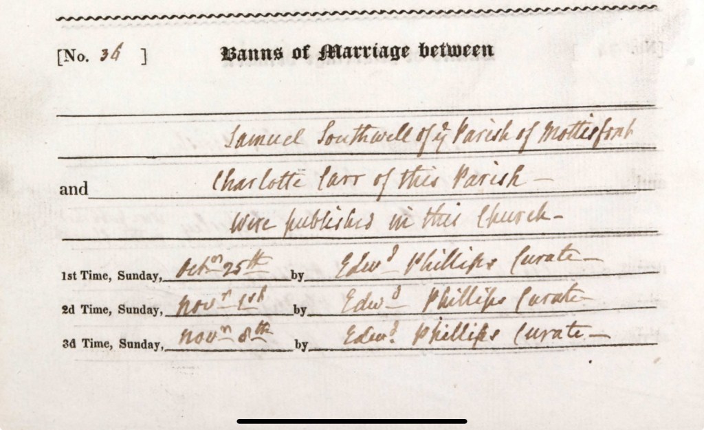In the autumn of 1835, the air in East Tytherley would have carried the whispers of a new union soon to be celebrated. Henry’s sister Charlotte Carr, daughter of John and Elizabeth Carr, and Samuel Southwell, a man from the neighboring parish of Mottisfont, were preparing to join their lives in marriage. The couple, like many before them, would have their marriage announced publicly in the traditional manner, through the publication of banns at St. Peter’s Church. The banns, which were read aloud on three consecutive Sundays, were an essential part of the marriage process at the time, ensuring that the community had the opportunity to raise any objections to the union before it took place. On Sunday, the 25th day of October, 1835, Curate Edward Phillips, as was customary, announced the intention of Charlotte Carr and Samuel Southwell to marry. This would have been a quiet but significant moment in the life of the village, as the sound of the curate’s voice echoed through the stone walls of St. Peter’s Church, calling the community to bear witness to the union that was to come. The banns were then read again the following Sunday, on the 1st day of November, and once more on Sunday, the 8th day of November, 1835. Each reading was a formal declaration of the couple's intent to wed, allowing the community the time to reflect, and for the couple to be recognized publicly as soon-to-be spouses. These announcements, held at the heart of the village in the sacred space of the church, were a way of ensuring that the bond between Charlotte and Samuel would be witnessed, acknowledged, and celebrated by their neighbors and fellow parishioners. For Charlotte, this was a moment of transition, a step from the familiar world of her family home, where she had grown up with Henry and her other siblings, to a new life with Samuel. As each bann was read, there would have been a sense of anticipation building for the couple, for their families, and for the village that had watched Charlotte grow into the woman she had become. In a way, the reading of the banns was a gentle reminder of the interconnectedness of village life. It was not just a formal ritual; it was a moment when a community collectively took part in the lives of its members, sharing in their milestones, whether joyous or difficult. The marriage of Charlotte Carr and Samuel Southwell was not just an event for the couple, but a celebration for East Tytherley, a moment that marked the continuation of love, tradition, and connection in the village’s long history. With the final publication of the banns on the 8th day of November 1835, the stage was set for a wedding that would soon follow, and for the promise of a new chapter in the lives of Charlotte and Samuel, one rooted in love and bound by the history of their communities.