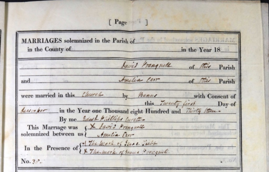On a crisp Saturday, the 21st day of December, 1833, the village of East Tytherley witnessed a joyous yet solemn occasion as Henry’s sister Amelia Carr, at the age of 18, married David Pragnell in a ceremony held at St. Peter’s Church. The day, cold with the winter's touch, would have been filled with the warmth of family and community, as Amelia, the daughter of John and Elizabeth Carr, stepped into a new chapter of her life, joined by David, a man of the same parish who, like her, was part of the close-knit community that defined East Tytherley. The ceremony was conducted by Curate Edward Phillips, a man well-known to the village and one who had presided over many such moments of joy and solemnity. The wedding, which took place by banns, the public declaration of the couple’s intent to marry, was a simple but meaningful affair, held in the presence of two witnesses: Edward Tubb and Edwina Pragnell. Both would have stood by Amelia and David during the service, witnessing their vows and the beginning of their shared life. A striking detail about the wedding was that David, Edward, and Edwina all signed the official marriage register with their mark, an "X" a reminder of a time when literacy was not as widespread as it would later become. The "X" symbolized a vow, an unspoken promise of commitment, and a step into a future that was shared, despite the limitations of written words. In the register, Curate Phillips carefully recorded the marriage details, noting that "Amelia Carr, of the parish of East Tytherley, and David Pragnell, of the parish of East Tytherley, were married by banns at St. Peter’s Church, East Tytherley, on Saturday 21st December 1833." This simple entry, marked with the presence of the couple’s closest witnesses and the signature of the officiant, was the official record of the union that would bind Amelia and David together. Their marriage was not just a legal or religious matter; it was a union that bound them both to each other and to the community of East Tytherley. It was a promise made before God, before family, and before the village that had watched Amelia grow from a child into the woman who stood on that winter day, ready to embark on her new life as a wife. The event, though simple, was a reflection of the deep roots of tradition and faith that held the Carr family and their neighbors together, in the small, rural world they called home. As Amelia took David's hand, and as they made their vows in the presence of god and their witnesses, their marriage became another thread in the intricate fabric of East Tytherley’s history, a quiet but powerful marker of the passage of time, of love, and of family.