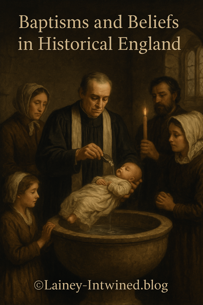 In the England of past centuries, baptism was more than a religious duty. It was a moment when the fragile beginnings of life were bound to the eternal, when families and neighbors gathered in hope, and when the Church sought to bring even the smallest infant into the fold of both heaven and community. Parish registers, carefully kept in Hampshire, Wiltshire, and beyond, reveal how this sacred rite unfolded in ways that were as practical as they were symbolic, shaped by tradition, geography, mortality, and belief. It may surprise us today that many baptisms were performed not on Sundays but on Wednesdays. This choice was rarely a matter of doctrine. Sundays were filled with the great communal drama of worship and Mass, while weekdays allowed clergy to focus on other sacraments. Wednesday, poised at the heart of the week, offered a natural pause between obligations, a day when priests, godparents, and families could gather without the press of Sunday duties. In the liturgical imagination, Wednesdays and Fridays carried echoes of fasting and penance, and baptisms performed on such days carried undertones of cleansing, renewal, and preparation for Christian life. Yet in truth, it was often simple practicality that prevailed, with registers from the sixteenth to eighteenth centuries showing Wednesday as a favored day across English parishes. Still, not every baptism waited for midweek. In rural England, urgency often dictated that the rite be performed at home, or in the quiet of early morning. The shadow of infant mortality loomed large, and parents feared their child might die before reaching the parish font. To delay was to risk a soul. A midwife or priest might therefore baptize the newborn almost immediately, sometimes within hours of birth, sometimes in the dim light of dawn. Bad weather, harsh winters, and the long distances of scattered parishes made such private baptisms not only understandable but necessary. Canon law made room for this reality, permitting baptisms outside church walls in cases of need, and authorizing anyone, even a layperson, to act, so long as water and the sacred Trinitarian words were used. Midwives, trained in the formula, became guardians not just of birth but of eternal life, standing at the threshold between body and soul. The records left behind bring these moments vividly to life. Some parish clerks noted only the essentials: the date, the child’s name, the parents. Others offered detail and context, adding phrases like “in danger of death,” “at home,” or “privately baptized.” Marginal notes might tell us the outcome: “child survived” or “died shortly after baptism.” One Hampshire entry from 1693 records: “John, son of Thomas and Mary Carter of Romsey Infra, was privately baptized at home by me, John Whitaker, minister, in danger of death. Godparents: William and Elizabeth Moore.” Another, from 1721, tells of Anne, daughter of Richard and Susanna Green, baptized at home by the parish minister because “the child was weakly and could not be brought to the church.” Such entries, often accompanied by prayers in the minister’s hand, “May the Lord preserve her life”, echo the tenderness and urgency of the moment. Sometimes the circumstances were stranger still. Registers contain notes of baptisms performed by midwives, when the priest could not arrive in time, or of “conditional baptisms,” performed if there was doubt whether an earlier ceremony had been valid. The formula would be adjusted “baptised conditionally, if not already baptized”, to ensure the sacrament’s sufficiency without presuming to repeat it. These practices reveal a Church that was at once careful and compassionate, eager to secure the spiritual safety of every child even amid the uncertainties of rural life. Beyond names and dates, parish registers also record glimpses of the world in which these baptisms took place. Entries often identified the family’s village or parish, linking each child to a precise place in the landscape: Romsey Infra, Romsey Extra, Sherfield English. Sometimes they included the father’s occupation, yeoman, blacksmith, labourer, tracing the contours of social order across the countryside. Marginal notes occasionally mark extraordinary circumstances: a harsh winter, an epidemic, a flood. In such moments, the register becomes more than a sacramental ledger; it is a diary of parish life, capturing the texture of daily existence alongside the eternal. Yet baptism was never only a clerical matter. It lived within a fabric of custom and superstition that gave the ritual deeper resonance. Families feared that unbaptized children were spiritually exposed, vulnerable not just to death but to darker forces. To guard against witches or spirits, iron objects, scissors, knives, were placed near cradles, while red threads or small charms were tied to the infant’s clothes. Midwives sometimes carried holy water or blessed tokens to protect newborns until a priest could arrive. Parents often chose names invoking saints, believing such names offered a shield against illness and misfortune. Even the written entry in the parish register could be regarded as a form of spiritual safeguard, a mark not only on paper but in heaven. After baptisms, neighbors and relatives would bring food or small gifts, gestures that were both celebratory and protective, binding the child securely within the parish network. Baptismal wax or cloths were sometimes kept near the cradle, symbols of the sacrament’s enduring power. For many families, such practices blurred the line between Christian ritual and folk belief, creating a world where faith and folklore, liturgy and daily life, worked together to guard the most vulnerable. To read these registers, to imagine the candlelit kitchens where midwives poured water over a child’s head, or the quiet chapels where a priest whispered the baptismal formula on a winter morning, is to glimpse the mixture of hope 