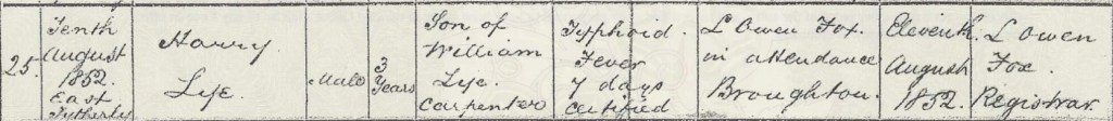 I’ve never come across a certificate indicating that the registrar was present at the time of death. Could he have been a friend of the family? Or possibly a relative? Perhaps it had something to do with Typhoid Fever, or maybe I’ll never know for certain.