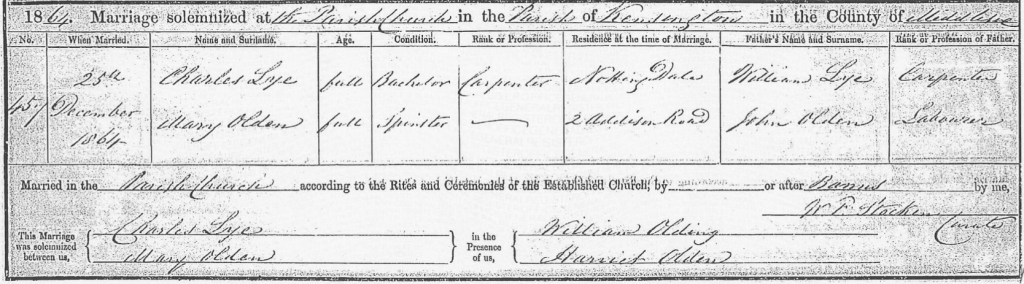 At his side in his final moments was his son-in-law, W. H. Simpson, of 66 Southerton Road, Hammersmith, who had been there to offer comfort and support. It was W. H. Simpson who took on the responsibility of registering George’s death on that very same day, Saturday the 1st day of September, 1906. Registrar Richard Popham was in attendance, documenting George’s details in the death register. It was recorded that “66-year-old George Lye, a male carpenter (journeyman) of 9 Southerton Road, Hammersmith, died on the 1st of September, 1906, at Hammersmith Infirmary, Du Cane Road, Hammersmith, from carcinoma of the larynx and exhaustion.” The death was certified by J. Jenkins, M.R.C.S.